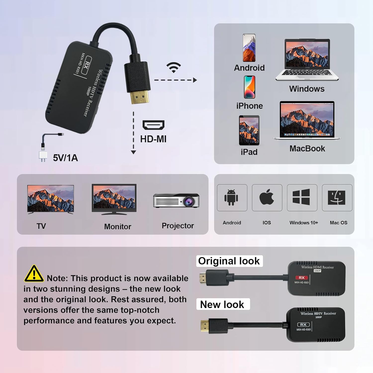 【Simple to Use with Broad Compatibility】 !!! This product is now available in two stunning designs – the new look and the original look. Rest assured, both versions offer the same top-notch performance and features you expect.The Adapter is plug-and-play—just connect and start mirroring! It’s compatible with a variety of HDMI-enabled devices, including monitors, projectors, and HDTVs. It works seamlessly with i*Phone, i*Pa*d, Android, M*ac, Windows laptops, making it an excellent tool for work or play.