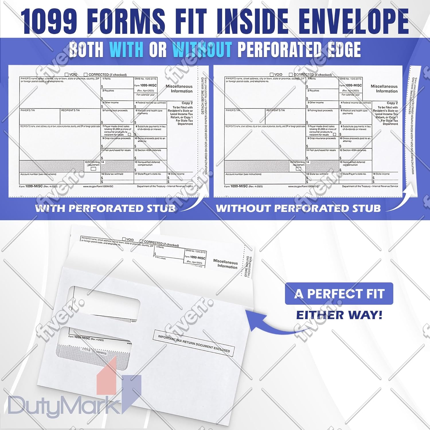 IRS & US Government Standard – Our 1099 INT Income tax forms meet all US Government and IRS requirements and standards. With this complete kit, you can file and mail your taxes with ease and peace of mind.