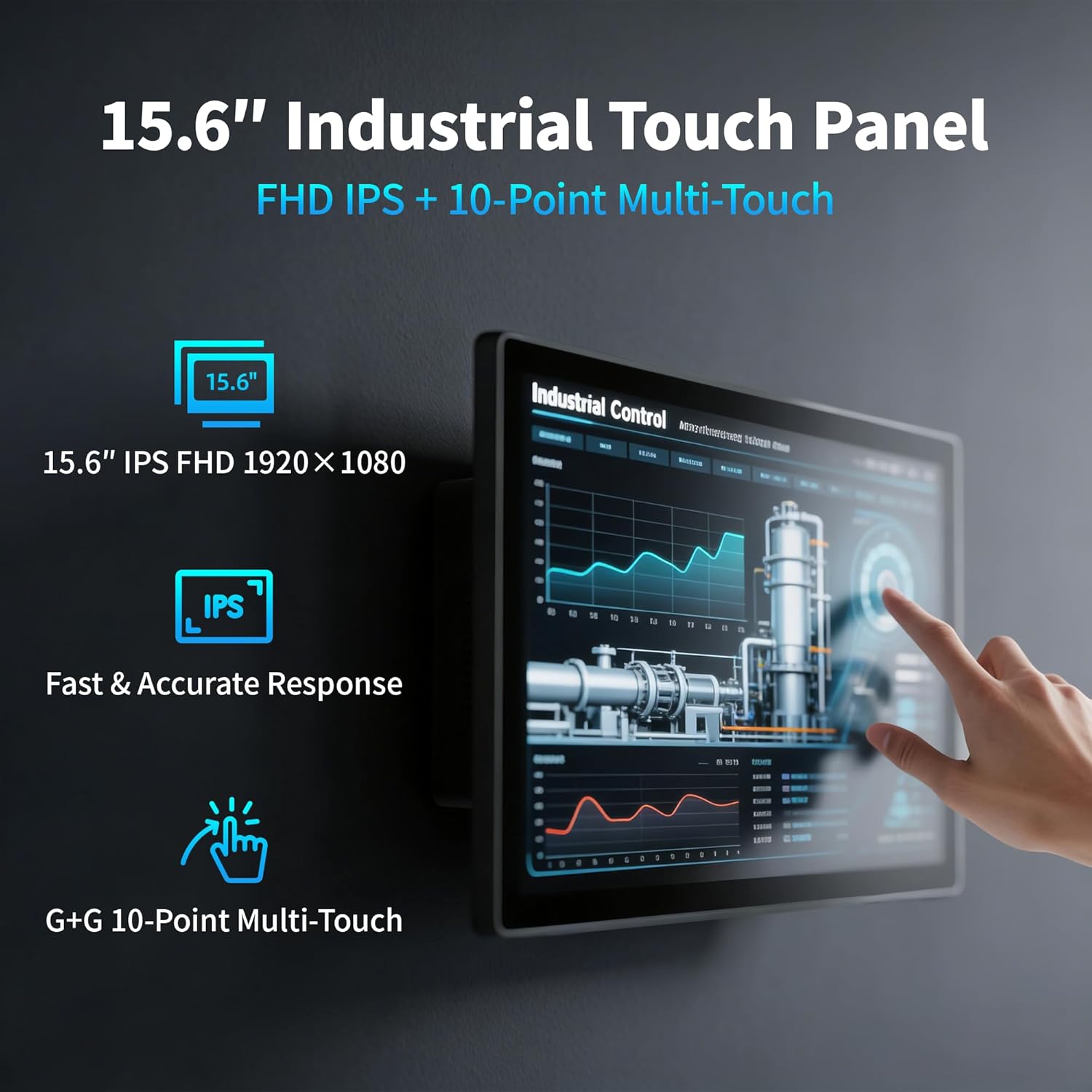【Full HD Visuals with Precision Touch】Designed for industrial versatility, this 15.6-inch PC combines a 1920×1080 Full HD 16:9 display for sharp visuals and software compatibility with a durable G+G 10-point capacitive touchscreen. It ensures accurate, smooth interaction and fast response even with wet or gloved hands, supporting reliable operation in demanding environments