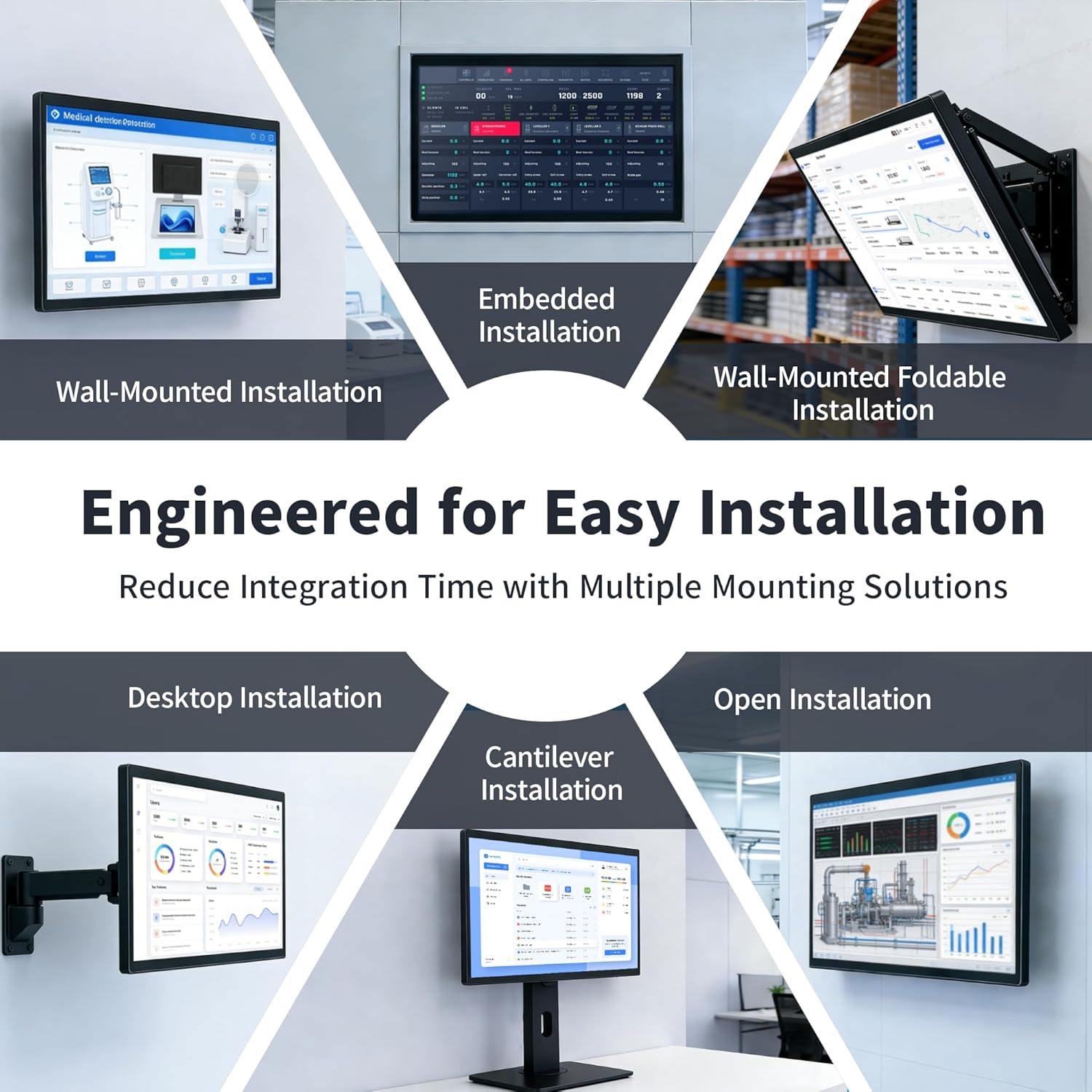 【Flexible Mounting for Multiple Scenarios】This industrial touch panel PC offers versatile installation options. It comes with standard PPC mounting hooks for seamless integration into cabinet equipment, while the rear cover includes standard VESA mounting holes for wall-mounting or desktop setups, easily adapting to diverse application environments