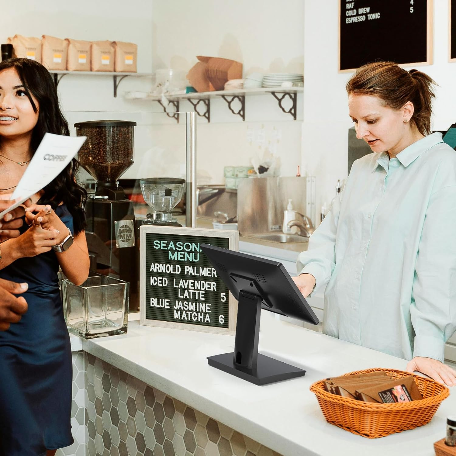 【Sturdy & Stable】The solid metal stand provides outstanding stability, preventing tipping or wobbling in high-traffic environments. Its robust construction keeps the monitor securely in place, reducing the risk of damage and ensuring uninterrupted operation. This enhanced stability improves user confidence and safety during touchscreen interaction, delivering a smooth and reliable experience.