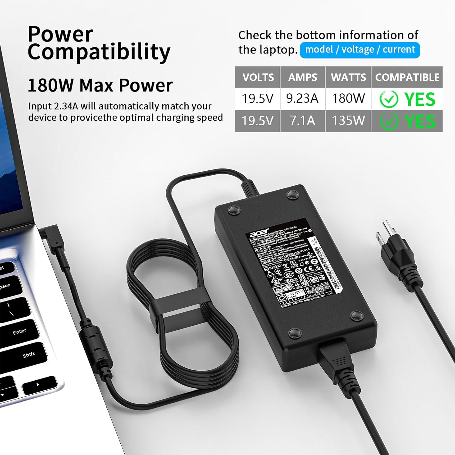 180W Laptop Charger for Acer: