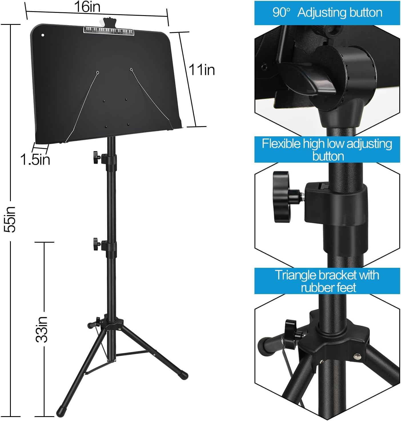 【Adjustable Height】- The height of the instrument music sheet stand can be adjusted freely from 33in to 55in, which is very comfortable for sitting and standing.