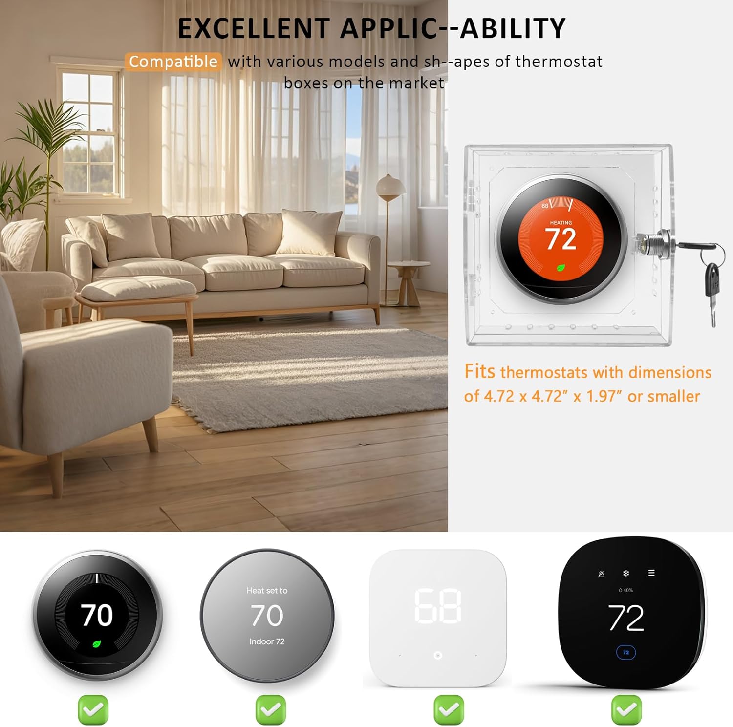 ✅【Note: Must Read Before Purchasing】This lock box is designed to Compatible with sizes and types Google Nest,Amazon Smart Thermostat,ecobee Smart Thermostat,Square Honeywell thermostat,an actual usable size of 4.72”*4.72’*1.97”(MAKE SURE YOUR THERMOSTAT SMALLER THAN THIS SIZE)