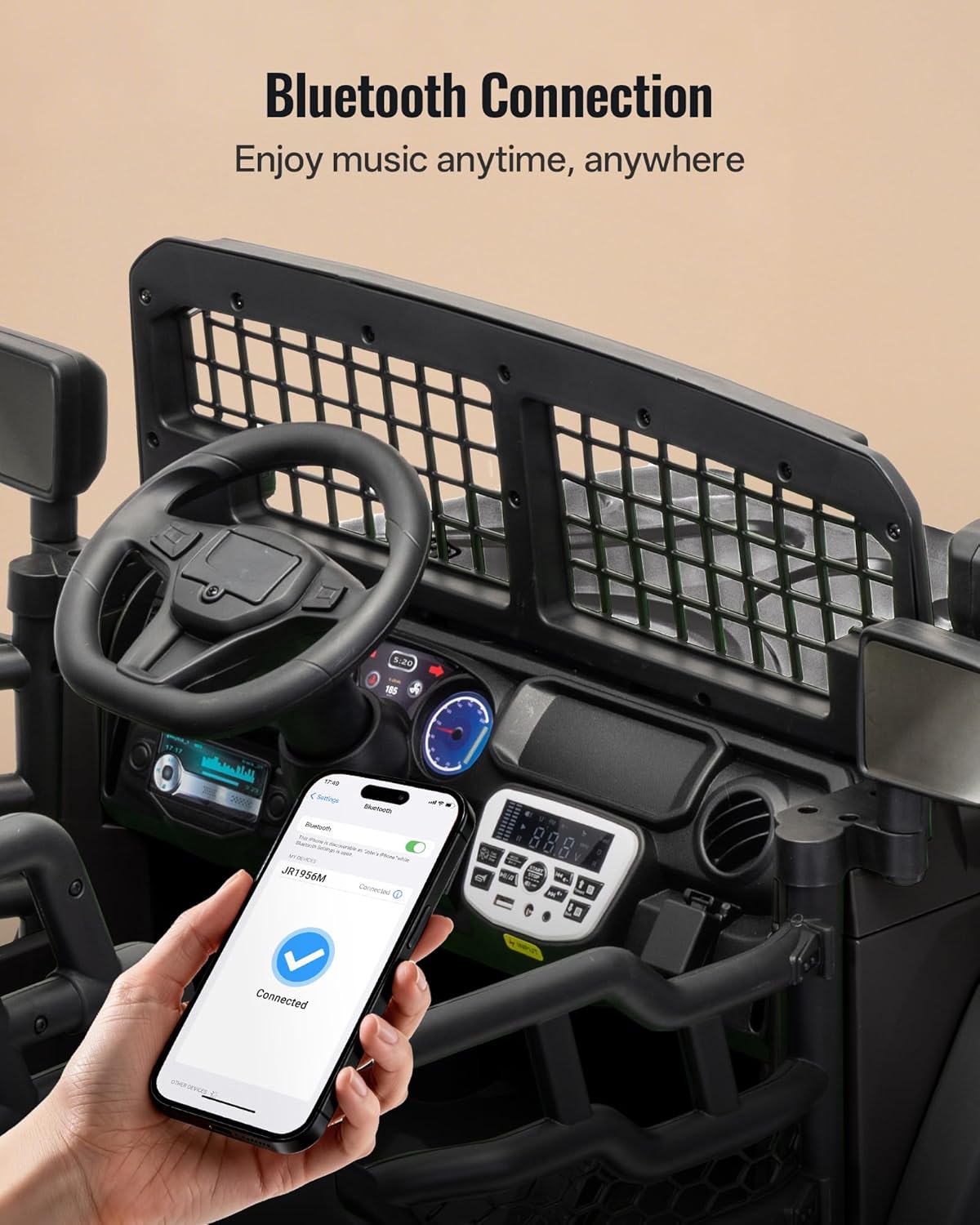 Realistic Driving Experience: Thrill-seeking kids will love this 24V ride on toy! Packed with realistic features like working headlights, rear searchlights, built-in music player and battery level display, this kids ride on car is built for imaginative outdoor adventures!