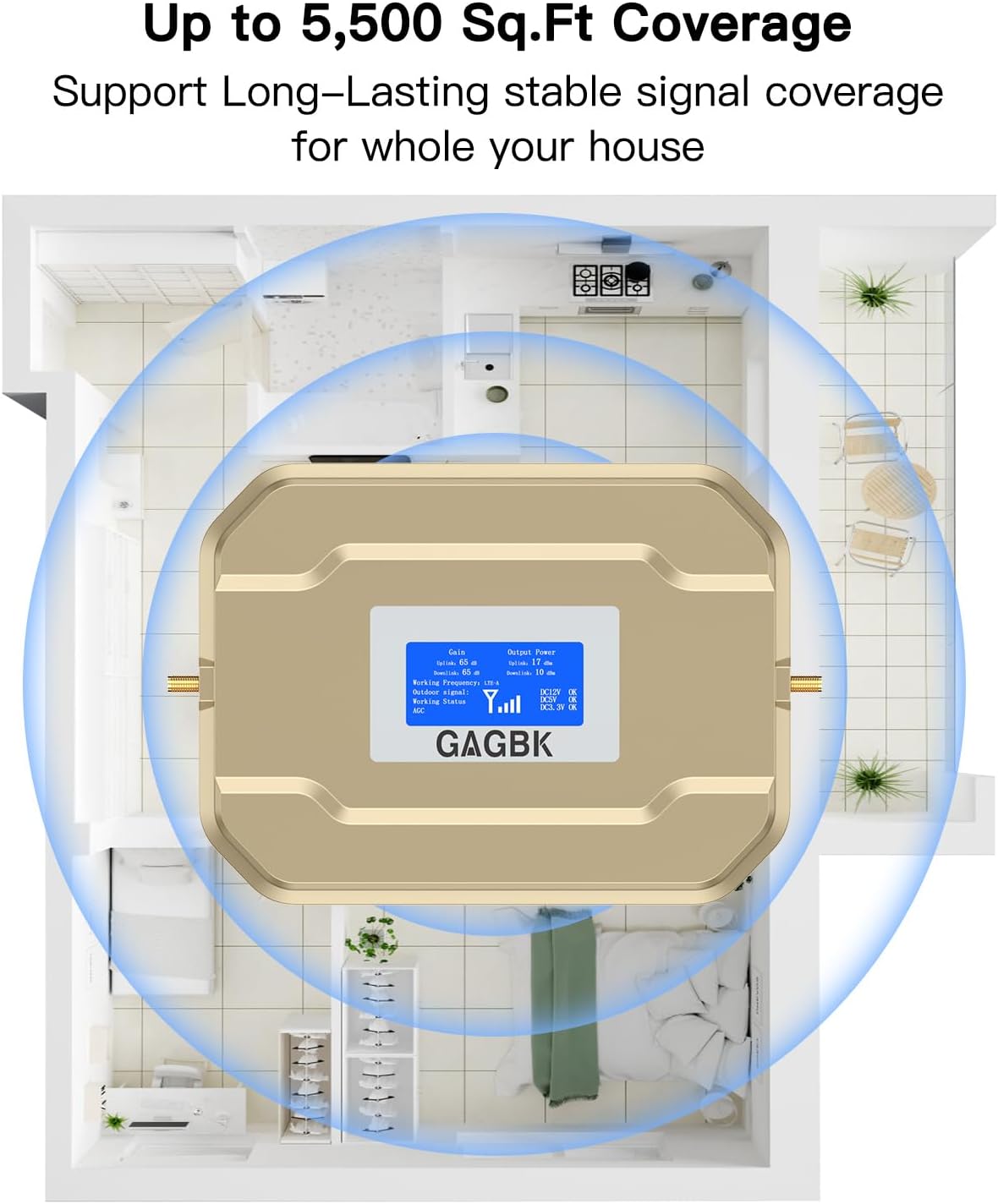 Powerful Signal Booster: Low operating temperature, High Gain 70dB, linear power, cell signal booster for home uses AGC(Automatic Gain Control) function, which can intelligently detect the existing signal strength, and adjust itself for best performance, then reflect its working condition through LED Display indicator, Cell booster signal repeater is used for Village, Garage, Basement, Home,Office, cabin, Garage, hotel, apartment, building, warehouse, metal housing or more.