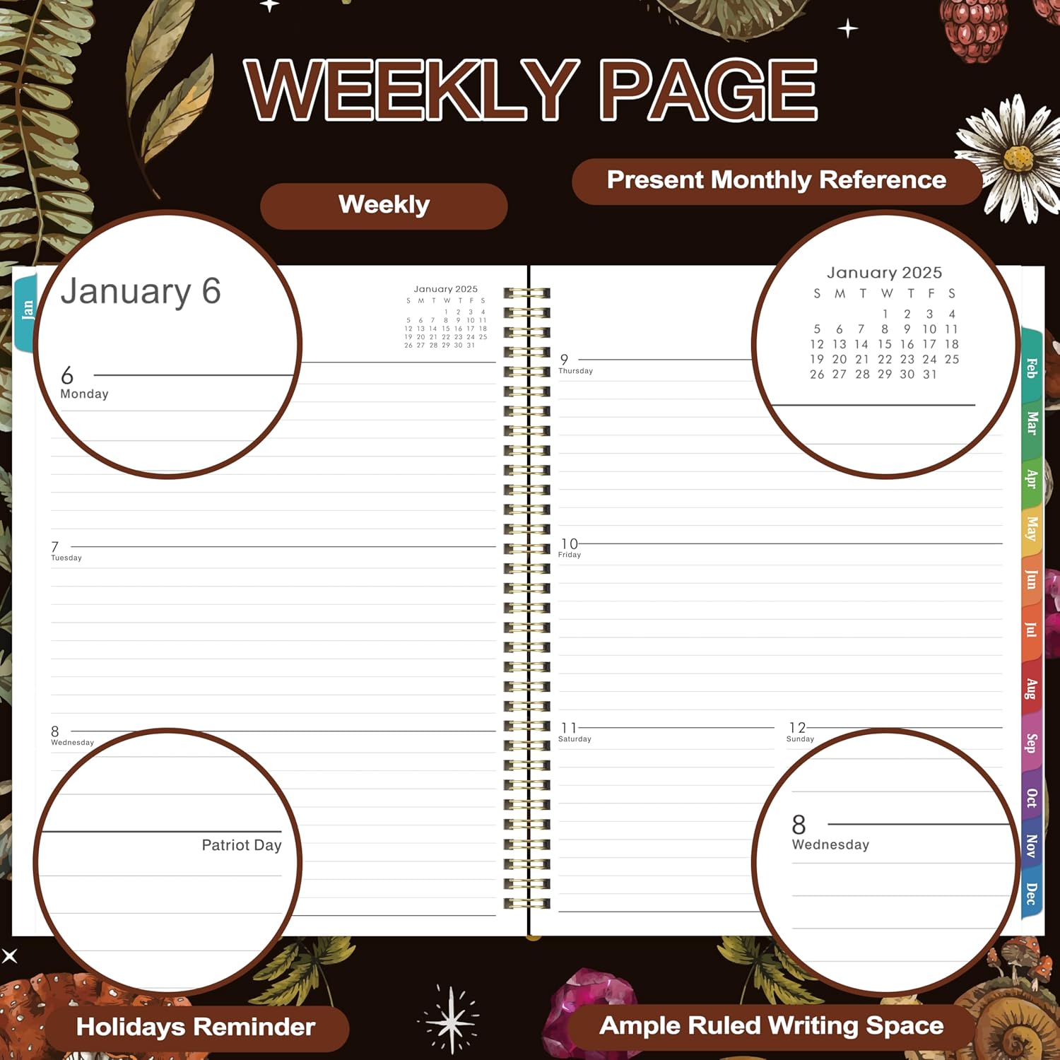 🦋 2025 Weekly Planning – Each weekly page is thoughtfully crafted with ample writing space from Monday to Sunday for your personal and professional goals, alongside a reference calendar and holiday reminders to keep your schedule in sync. This 2025 planner is your gateway to a balanced and productive lifestyle.