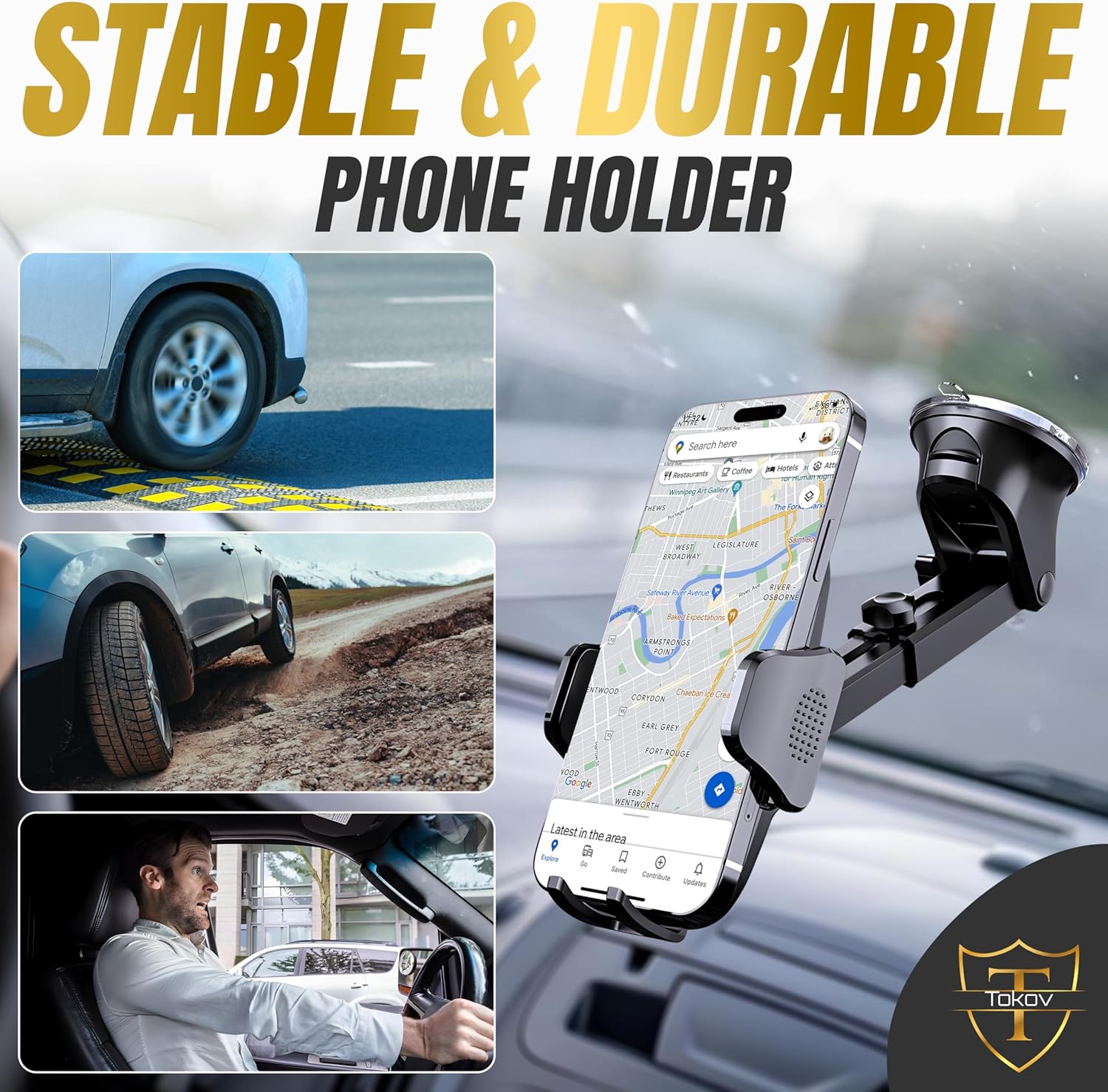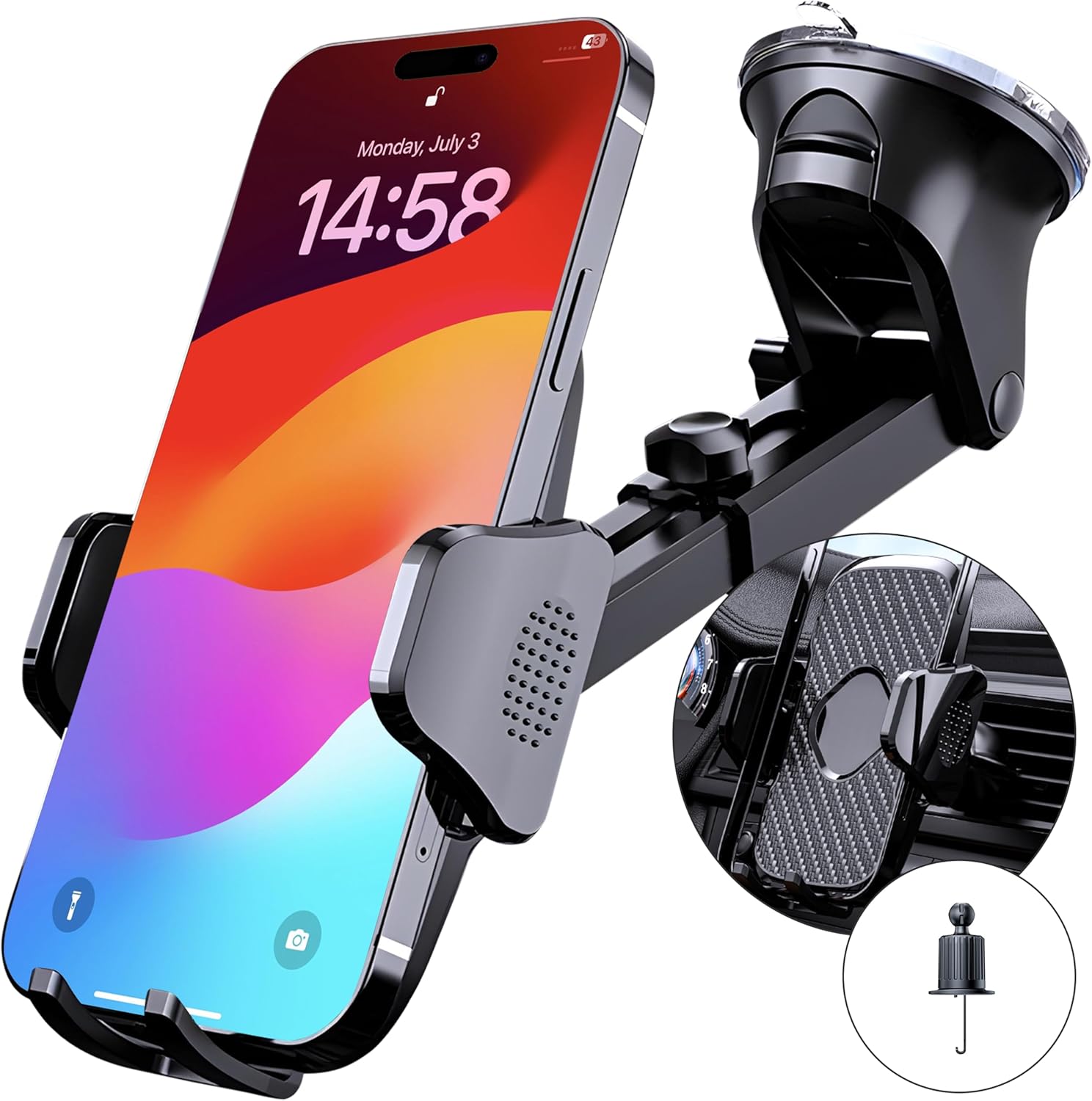 85+LBS Suction Power: Holds up to 85+LBS, ensuring your phone stays secure even on bumpy roads. Military-Grade Durability: Made with military-grade materials for long-lasting reliability. Versatile Mounting: Easily mounts on dashboard, windshield, or vent for hands-free use. Wide Compatibility: Fits iPhone 16, 15, 14 Pro Max and most Android devices. Heavy-Duty Performance: Secure hold on uneven terrain, perfect for long trips. Easy Installation: Quick setup with no tools required, just mount and go!