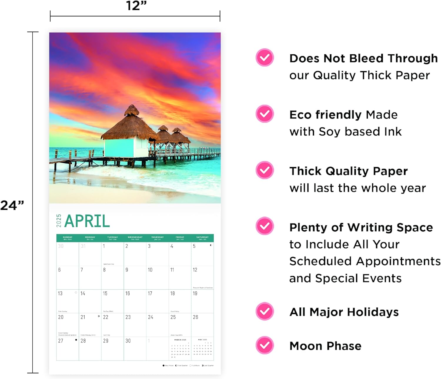 High Quality : Wall Calendar Size Closed: 12 x 12 Inch. Opened: 12 x 24 Inch. Does not bleed through! 13 Full Color Images in our 2025 12 x 12 Wall Calendar. No compromises are made on image quality or content.