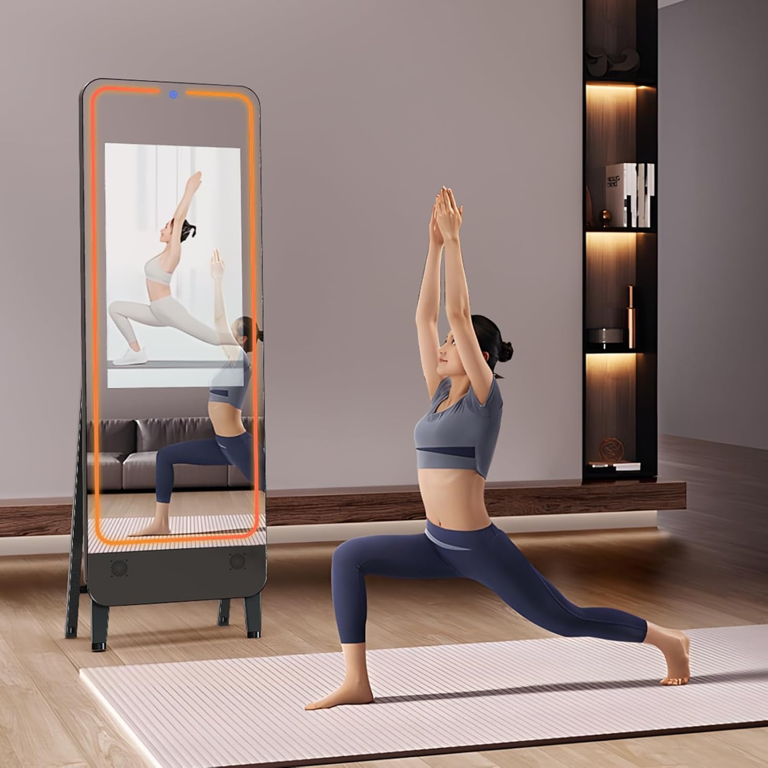 32″ Smart Gym Mirror for Home Gym Workout, No VIP Required, 1080P HD Screen, 55″ Mirror, Screen mirroring/ Miracast/ Screen Projection Support Various APP, with Light and Sound Control