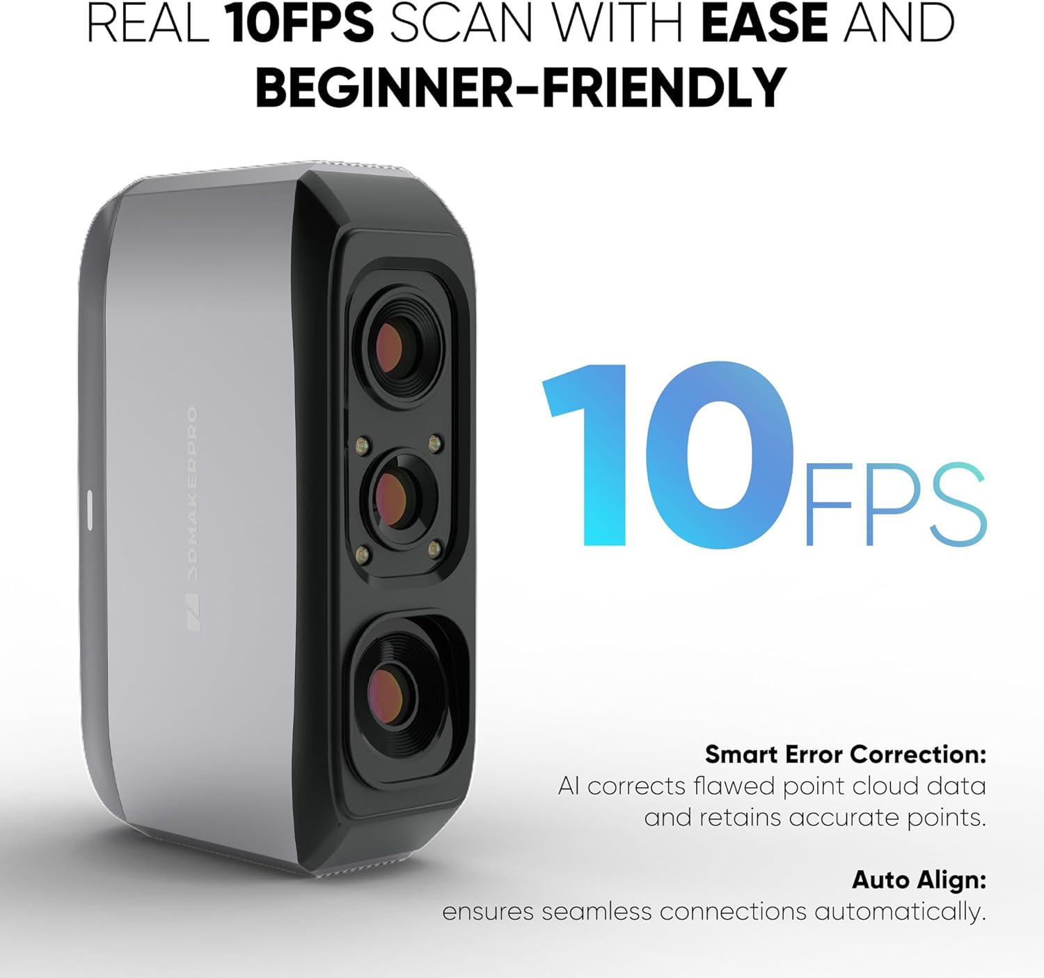 3DMakerpro 3D Scanner for 3D Printing, Handheld 3D Printer Scanner 0.05mm Precision, 10FPS Scanning Speed for Medium Object, Support for Android/iOS/Win/MacOS, Moose Lite Advanced
