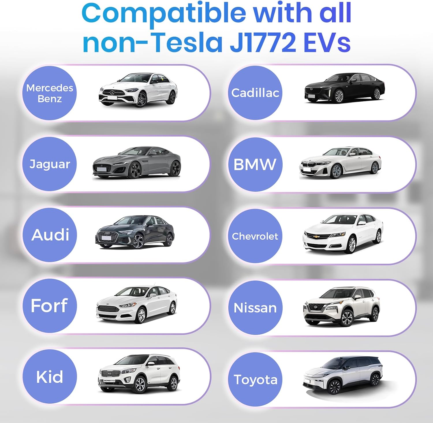 On first look this appeared to be a really nice charger, with a shiny finish on the charger handle and chrome top button/latch release and a nice compact main body with heavy cords and adapter, including a perfect fit cradle to mount on the wall. BUT this is the tightest fitting charger I have ever encountered – I was afraid I was going to damage my car's charging port trying to get this to seat properly, and even worse when I was trying to pull it out when done charging!! I use a public charger and either of my two personal chargers every day so I know what the charger should 'feel' like when inserting and removing and this one is just terribly tight, so it's going to live in my trunk as a backup only!!