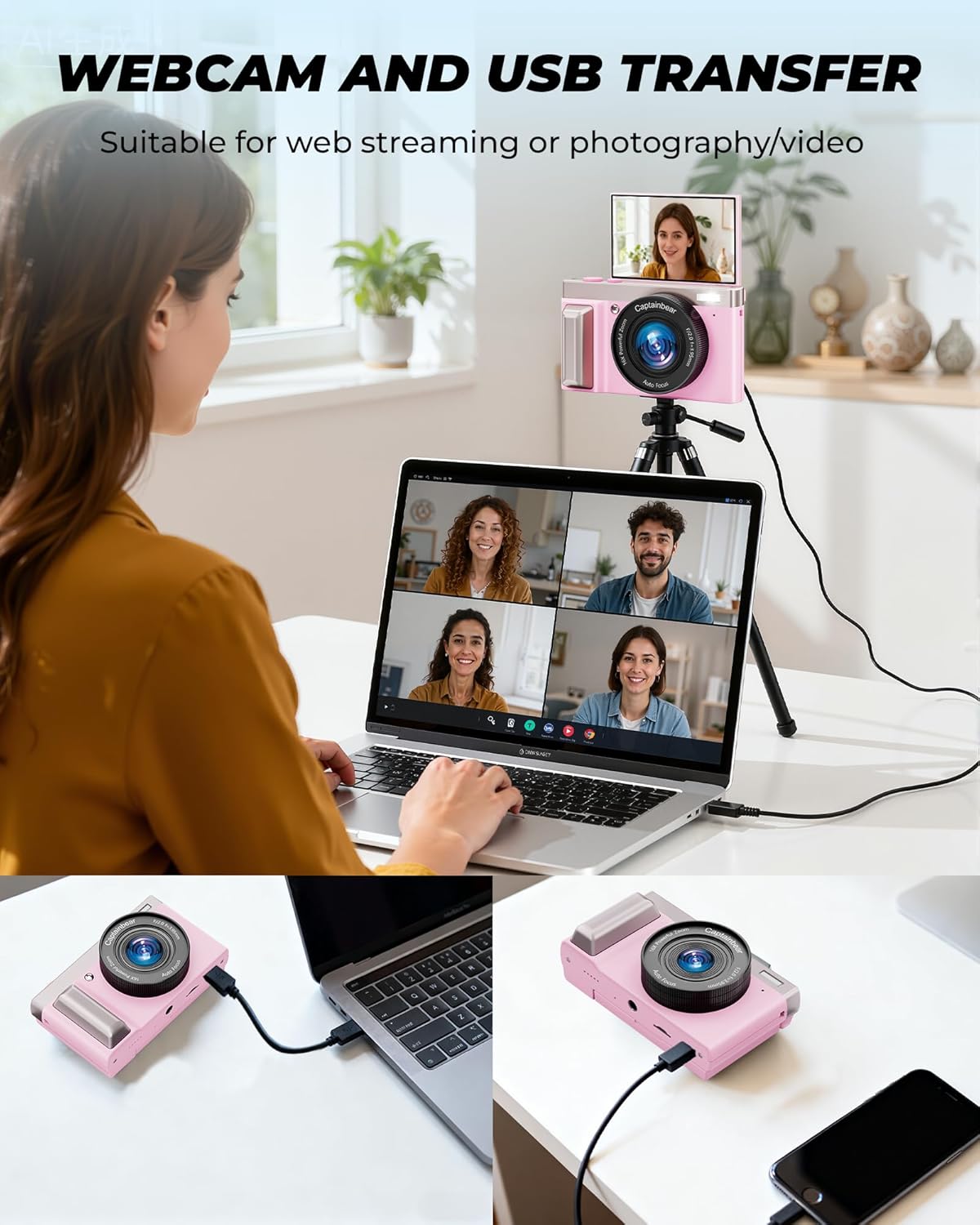 【Webcam Function & Easy Sharing】Beyond photography, this camara fotografica doubles as a webcam for video calls, live streams, or online classes—simply connect it to your computer via USB.The photography camera also supports photo/video transmission (using a USB adapter, included), so you can quickly edit and share your favorite shots on Instagram, TikTok, or Facebook, bridging vintage charm with modern digital convenience.