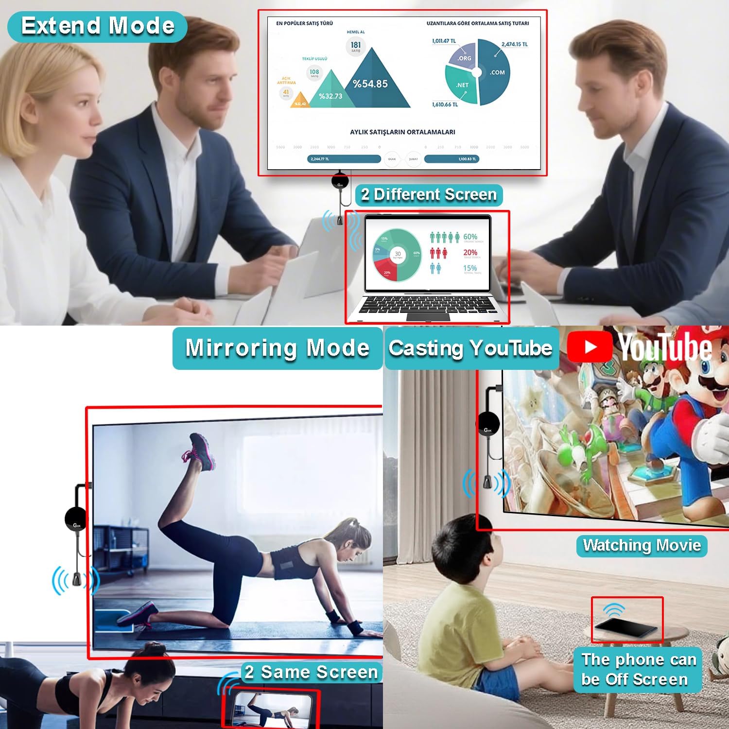 【4K UHD Quality + Stable, Low-Latency Transmission】Built with a high-performance chip, it delivers 4K decoding and stunning 4K output (backwards compatible with 1080P). The 2.4G/5G dual-band ensures ultra-stable, high-speed streaming with minimal latency , keeping your presentations smooth, movies lag-free, and video calls uninterrupted.