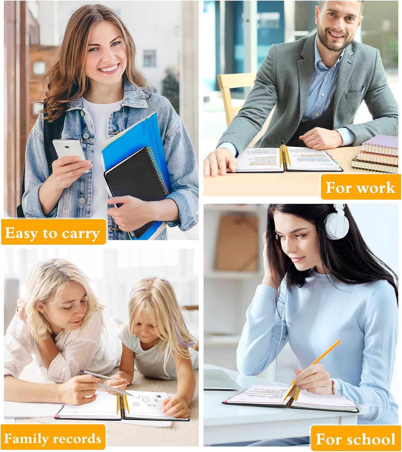 【360°Turn Around Metal Spiral Coil】Are you tired of repeatedly fixing fall out pages? Our 5 subject notebook use metal spiral binding coil,no more worrying about the page falling out of the spiral gap during use. The large coil provides plenty of space for smooth page turning allowing for 180°lay flat to write and 360°fold up for a comfortable writing position making your note taking more joyful and efficient.