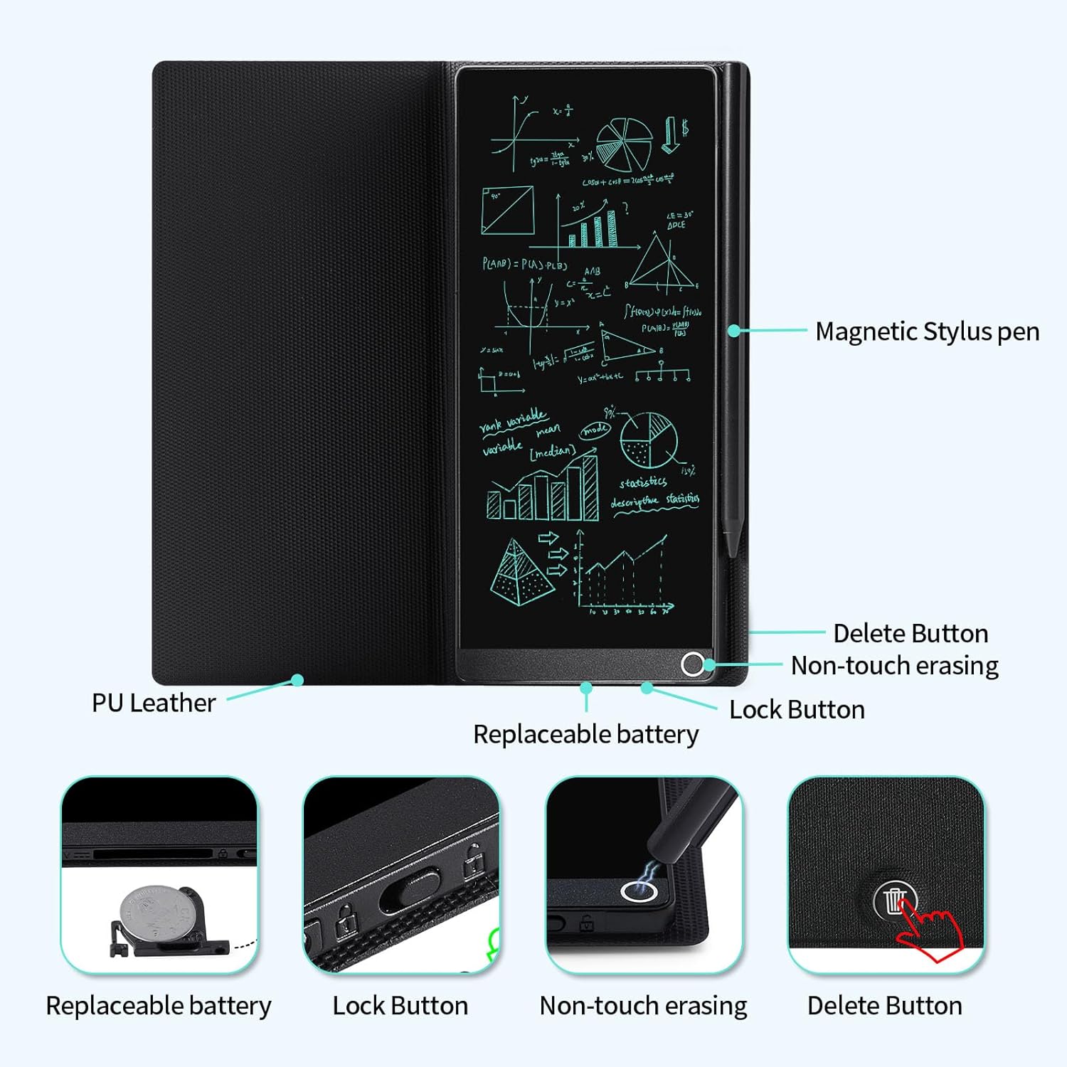 Full protection and anti-drop: With a high-quality PU protective case, the electronic notepad can be wrapped in all directions perfectly, protecting your handwriting board from scratches, depressions, and other damage, and has good anti-shock function.