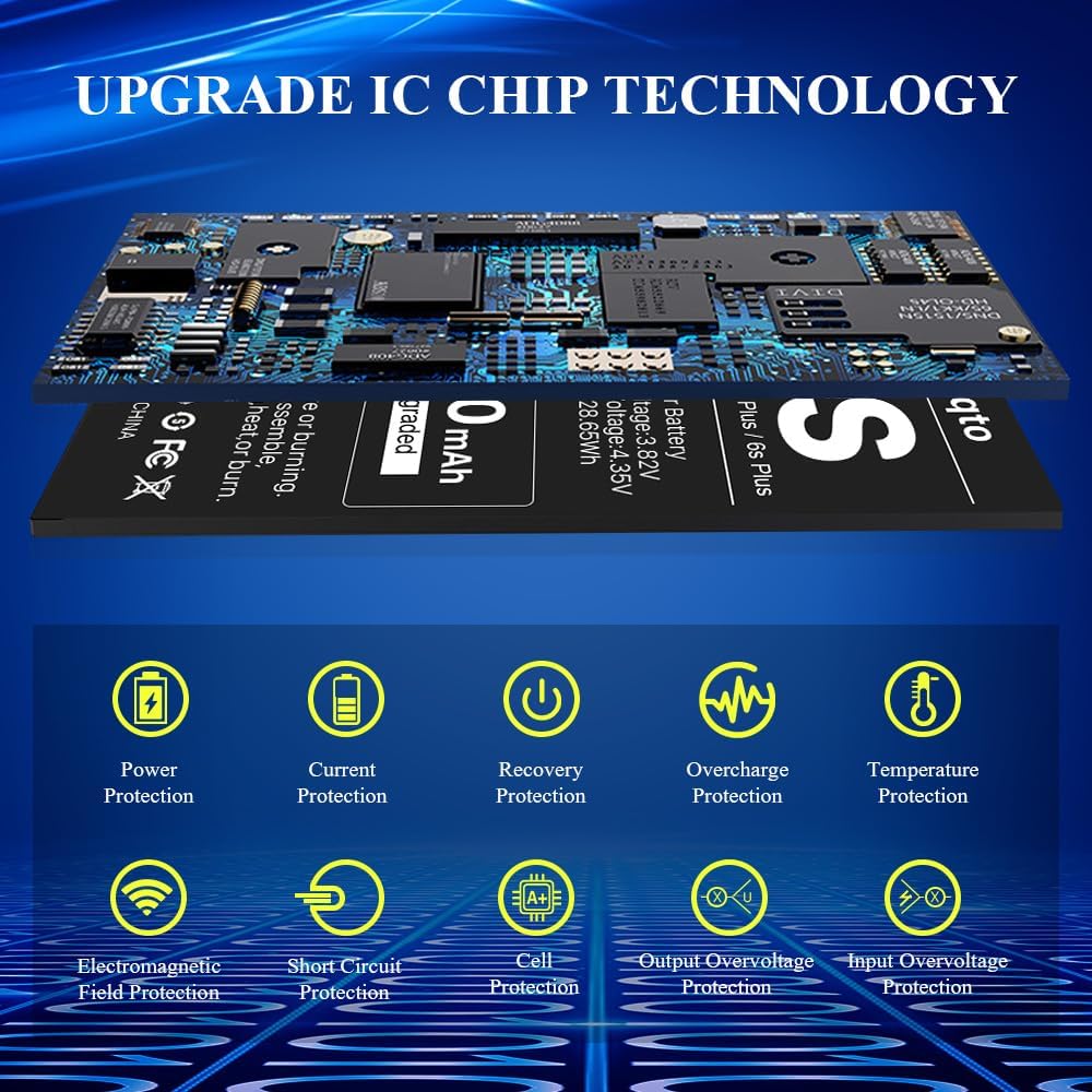 [HIGH CAPACITY 6S BATTERY]: 7500mAh This Replacement Battery for iPhone 6S is 86% Higher Power Than Original Battery. Brand new 0 Cycle,Built to last up to 1000 Charging Cycles to Provide Longer Battery Life.Grade A+ cells Ensure High-speed and Efficient Charging.