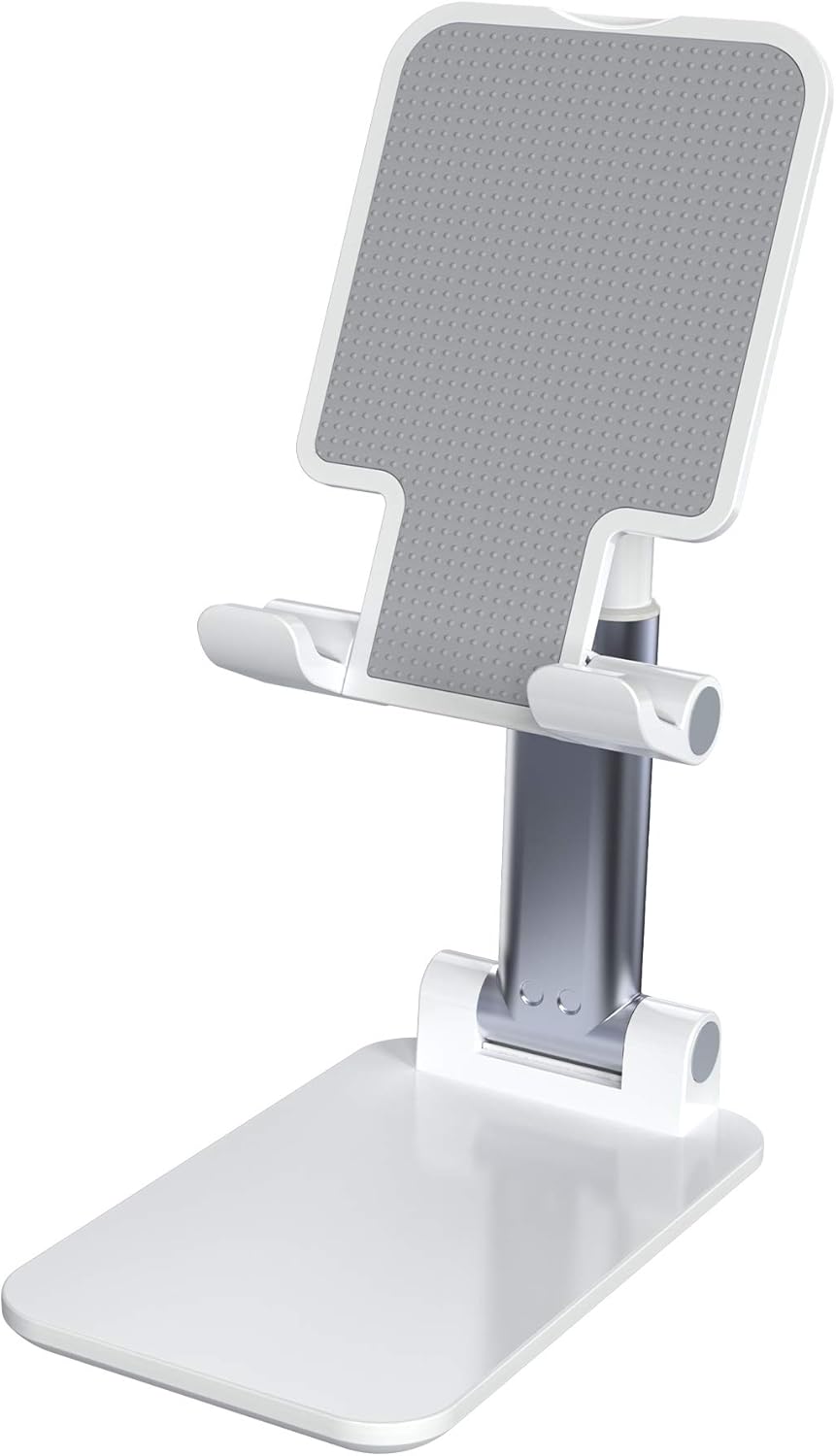 Adjustable Cell Phone Stands for Desk, Aluminum Folding Phone Holder with Stable Base and Charging Port for 4-12.9 Inches Smart Phone, Tablet (White)