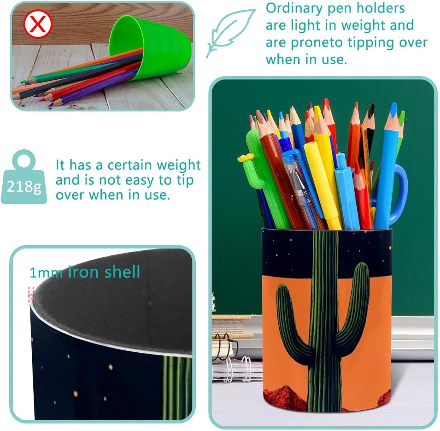 【Pen Holder Material】Pen Pencil holder made is from durable iron and leather bottom, flannelette cardboard inside. Beautiful appearance, which is durable, not easy to break, and not easy to rust and mold. Desktop Organizer is solid and very sturdy.