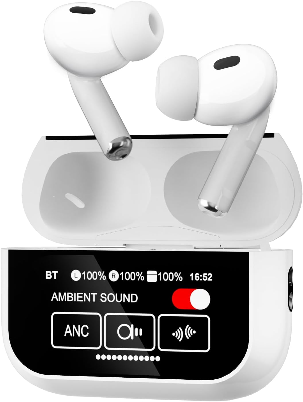 Touchscreen Charging Case: Manage your listening experience with just a tap. Easily check battery levels of both earbuds and charging case, adjust volume, and customize sound effects with the intuitive touchscreen charging case. Enjoy on-screen lyrics and remotely snap photos with the smart screen
