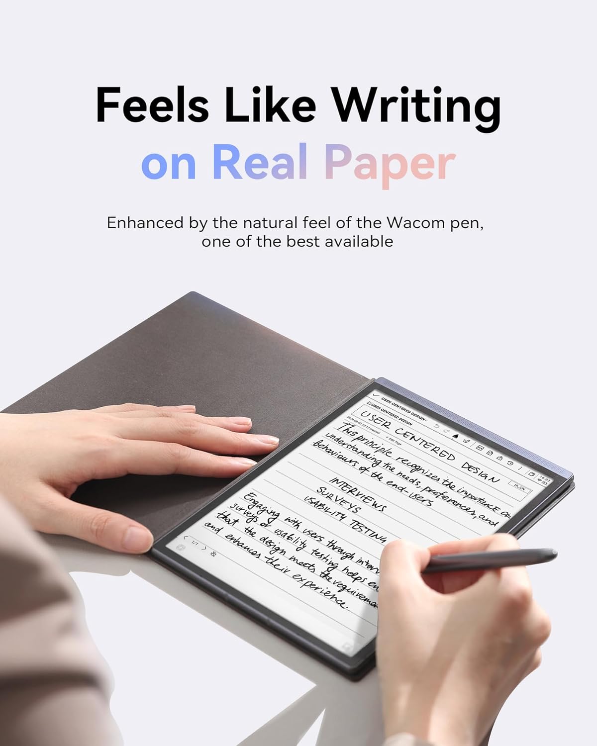 The paper-like writing experience is amazing—it really feels like writing on high-quality paper. I also appreciate the eye-friendly screen and adjustable lighting, which makes long reading sessions much more comfortable.