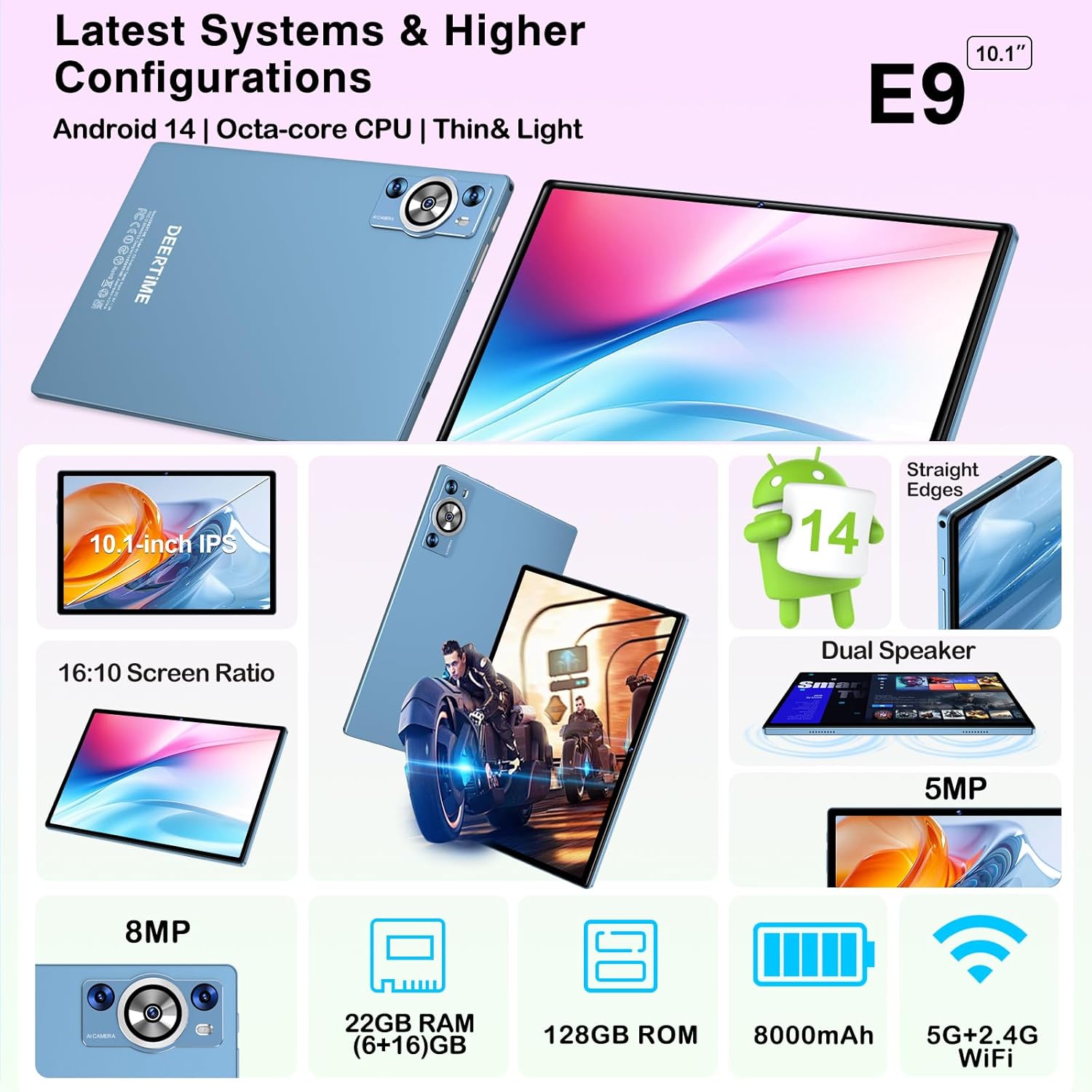LATEST ANDROID 14: Featuring Android 14, this tablet boasts an octa-core processor with two 2.0GHz A75 cores and six energy-efficient A55 cores, offering a powerful combination for smooth multitasking, gaming, and enhanced performance