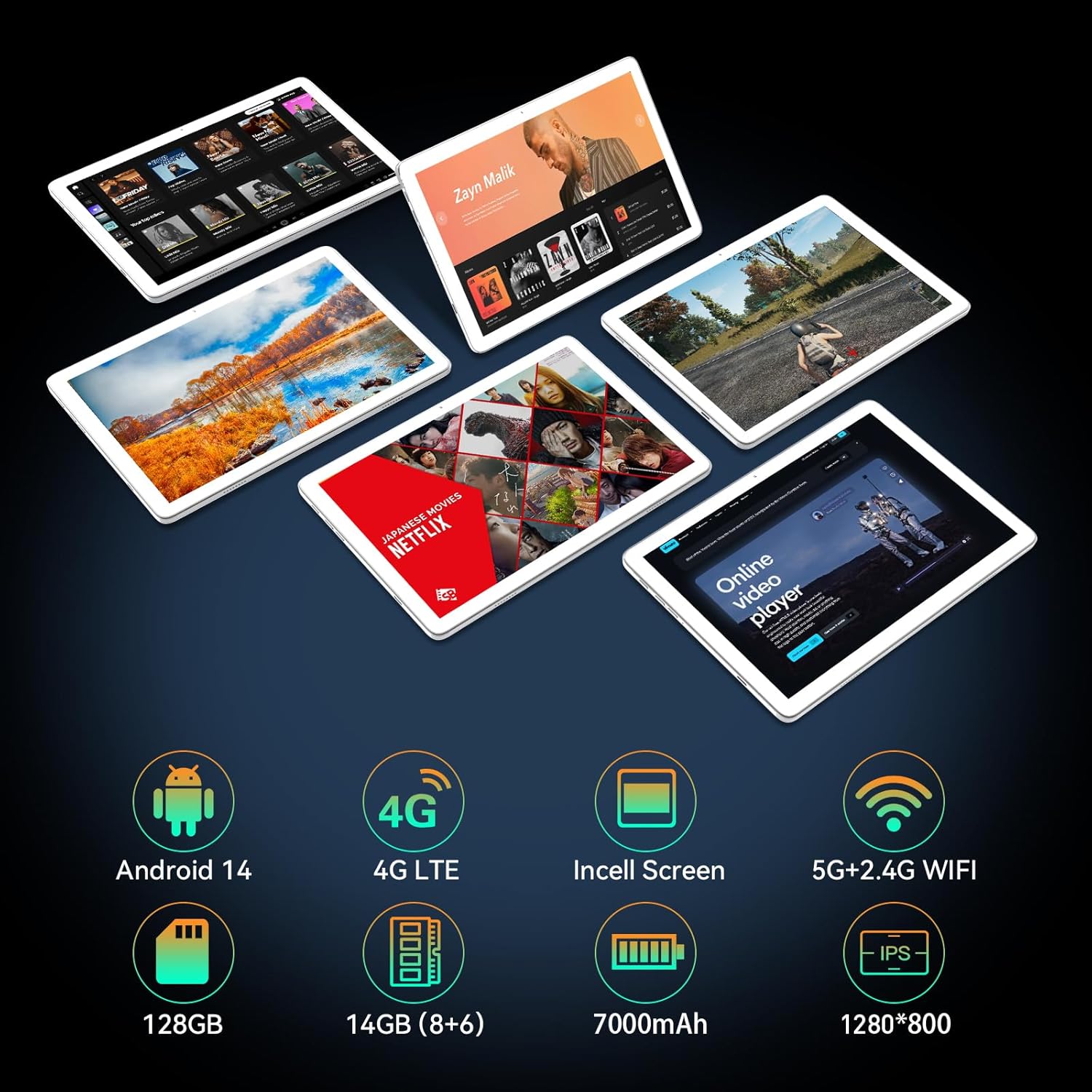 【BOOST YOUR PRODUCTIVITY】2025 Newest Android 14 Tablet is equipped with the All Network Octa-Core LTE Platform UNISOC T606. Based on advanced 12nm processing technology, T606 lets users do more, faster, thus giving an unparalleled tablet experience. The lightweight tablet weighs only 1.2lb and is only 0.25 inches thick, making it easy to carry with you to work, study or on the go.