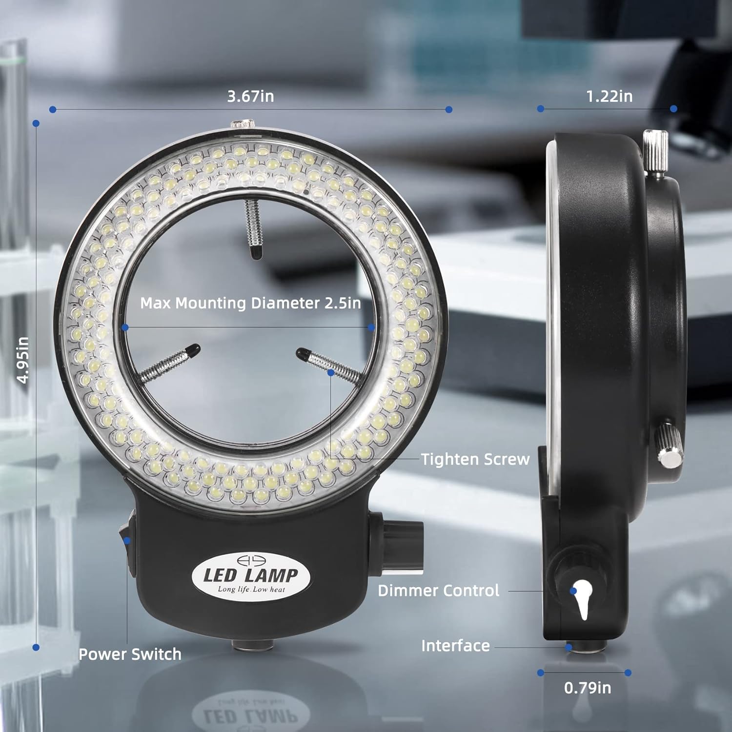 Wide Applications: The led microscope ring light can be used for microscope lighting, added light for close-up photography. It is ideal for education, photography, laboratory research, engineering, chemistry, manufacturing