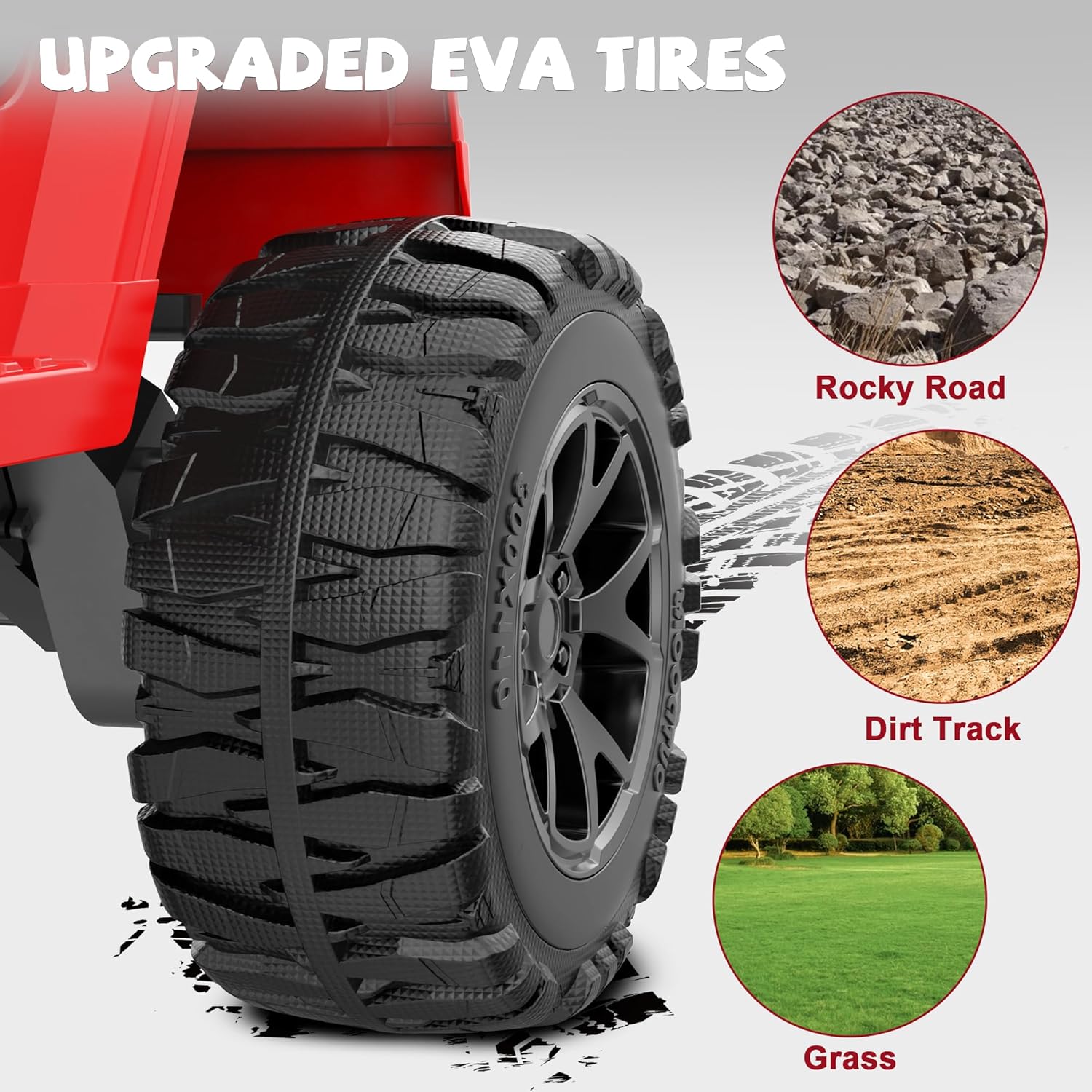 【Ideal for Off-Roading】This 24 volt ride on toys for boys features four upgraded EVA tires for superior grip and shock absorption. Combined with an advanced four-spring suspension system absorbs shocks and bumps with ease, while the 11-inch high chassis safely passes obstacles, our kids cars to drive provides a smoother ride, making it easy to traverse rough terrain. Get ready for a real adventure