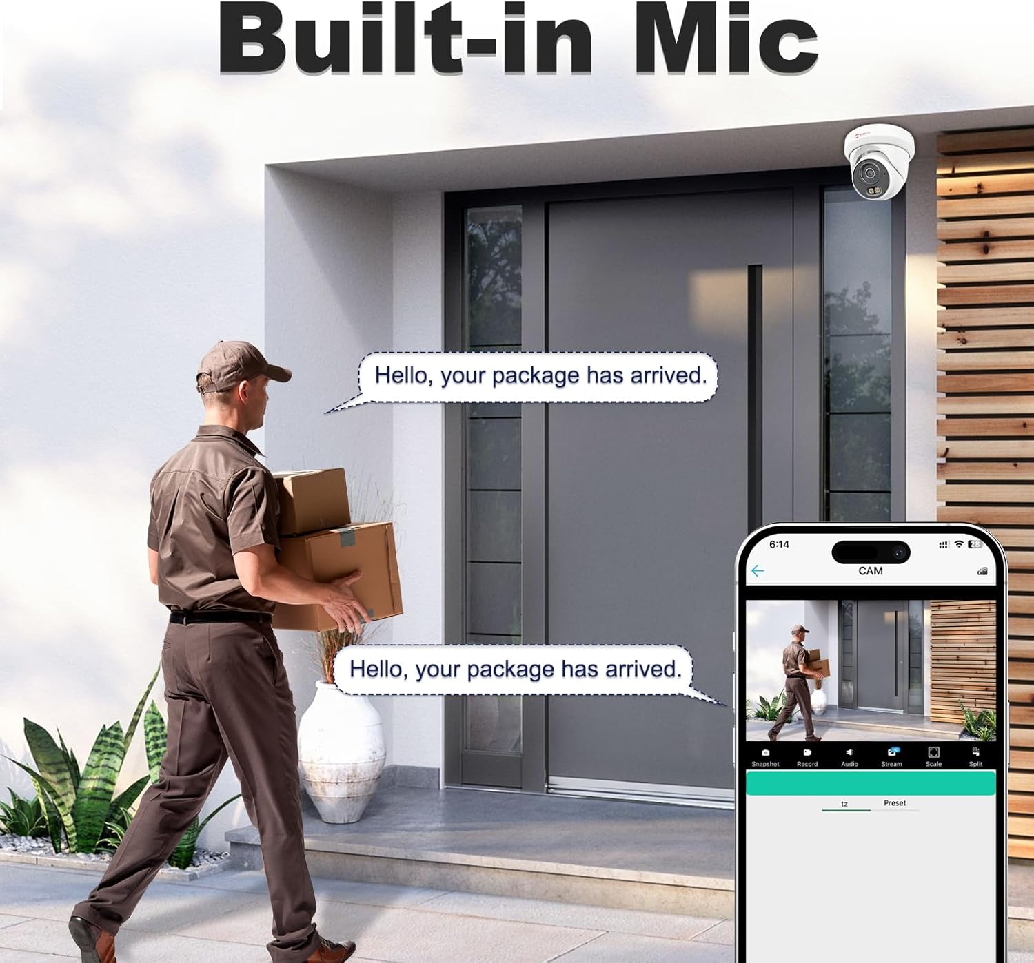 6MP Ultra HD & Built in MIc: Experience stunning 3072×2048 (6MP) resolution, exceeding standard 5MP clarity, this PoE turret camera outdoor can capture intricate details. With a built-in microphone, the PoE security camera can record listen-in audio and filter environmental noise.