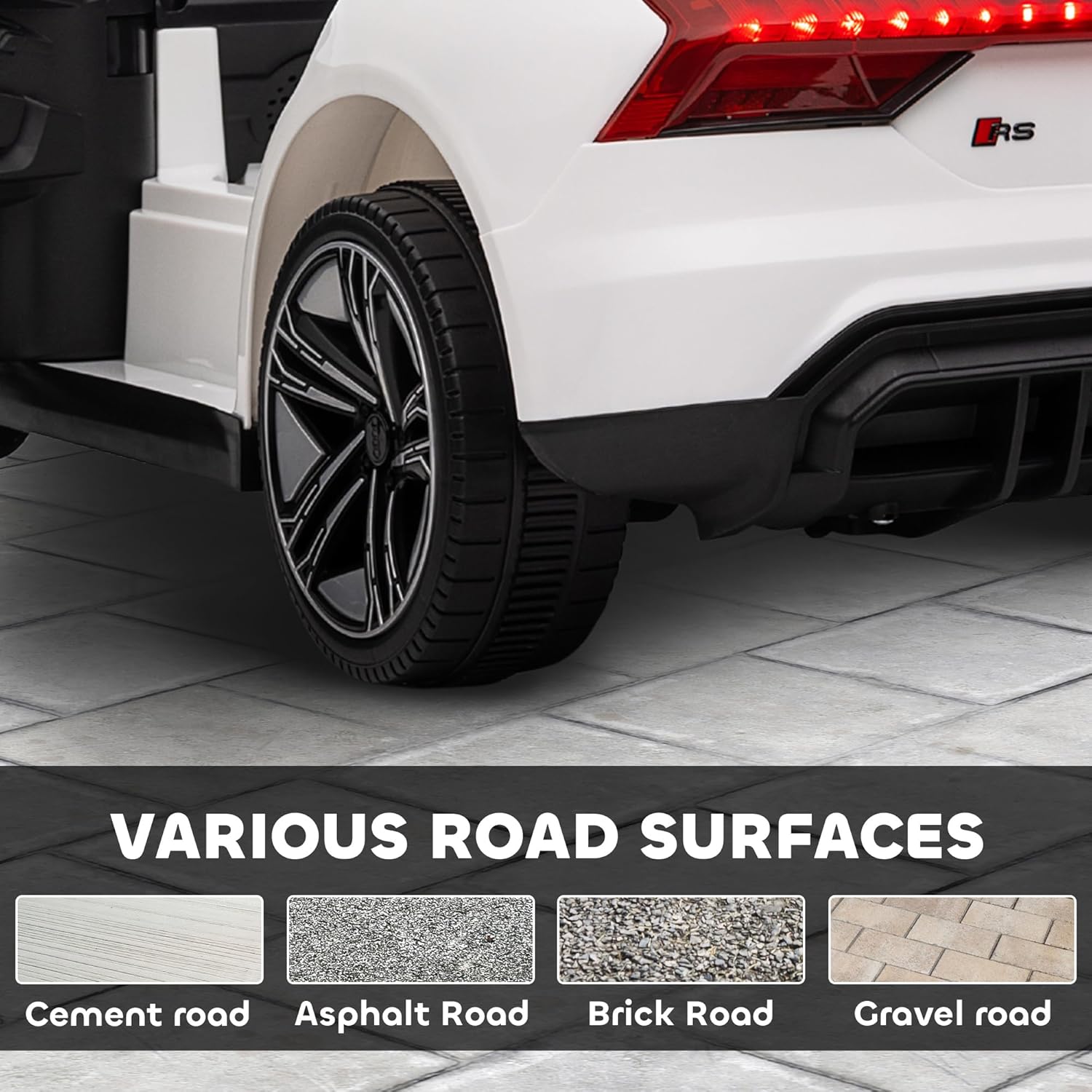 Inside Experience: The steering wheel features a button to sound a horn, giving kids the power of noise to make their play more enjoyable. This also adds safety by allowing them to get the attention of any other kids playing in front of the electric car. With a USB and AUX port by the dashboard, kids can sing to their favorite tunes along the ride. Add realism with plug-ins like a real car.