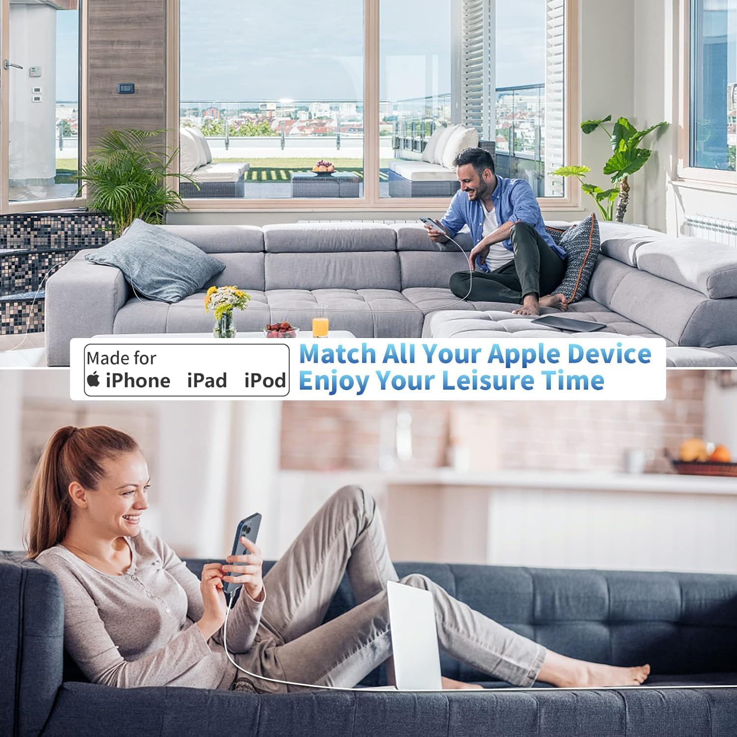 【6FT Extra Long & MFi Certified Cable】: Our USB-C Cable with the original MFi Chip. The original MFi Certified Smart Chip, ensures 100% high speed charge and data sync transfer of up to 480 Mbit/s. This 6FT(2m) C to C cable is suitable for different occasions. fast-charging for iPhone 16, 16Plus, 16 Pro, 16 Pro Max iPhone 15, 15Plus, 15 Pro, 15 Pro Max, iPhone 14/13/12/11/XR/XS Max, iPad Pro 12.9/11 inch, iPad 10, iPad Air 5/4, iPad mini 6, Mac Book Air 13 inch, Mac Book 12 inch, iPad Pro 11inch, AirPods, and USB-C devices.