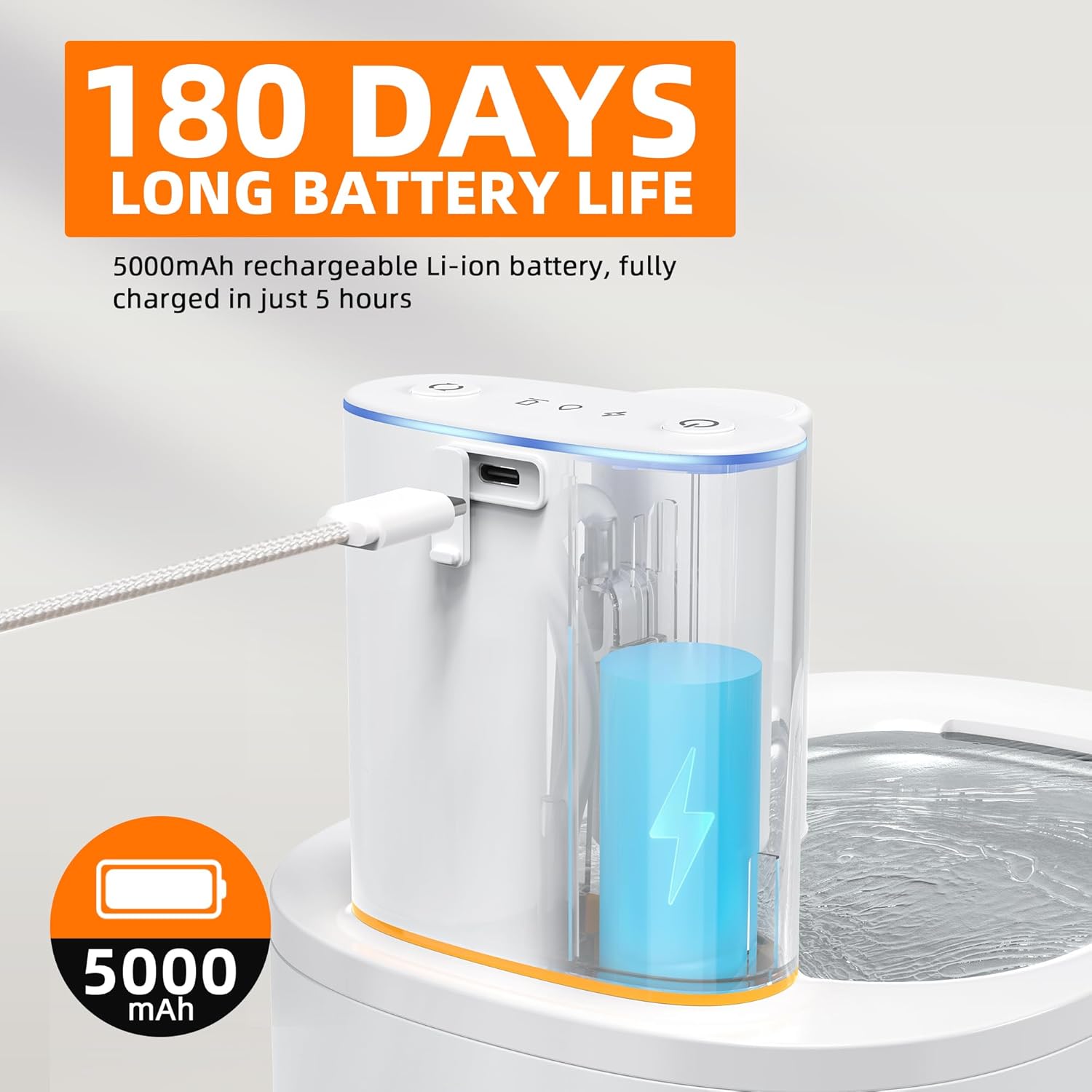 External Water Pump: The Yuposl Ultra Filtration Wireless Cat Water Dispenser features an external water pump that ensures your cat’s safety by eliminating static electricity in the water. It also guarantees hygiene and convenience, as the water-electricity separation design saves you from cleaning the pump regularly.