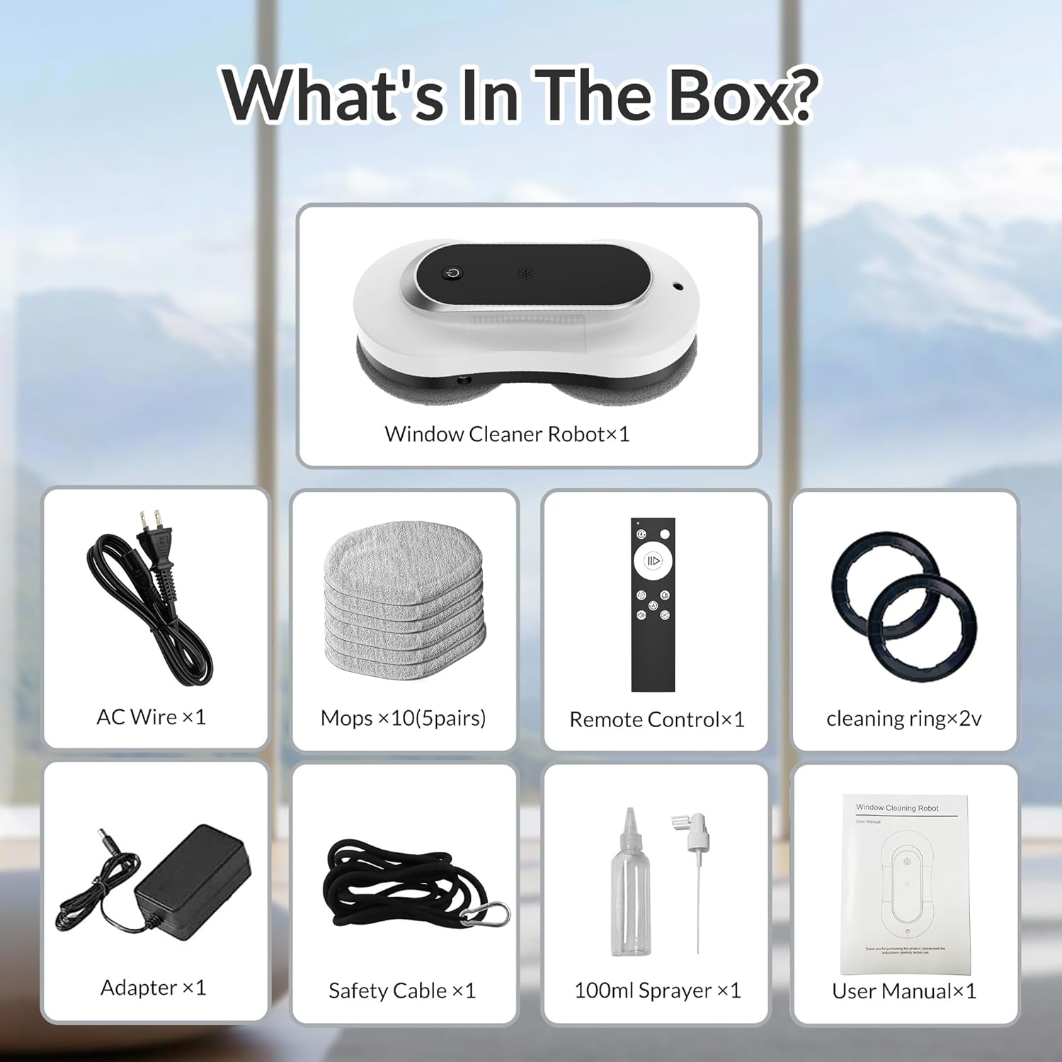 Easy – to – Use Operation:This window cleaner comes with a remote control that has a simple and intuitive interface. Even first – time users can easily get the hang of it. Through the remote control, you can conveniently control the start, pause, and water – spraying functions of the robot. After completing the work, it will automatically return to the starting point. (Please be sure to confirm that the robot is firmly adsorbed on the glass before releasing your hand.) Operating the automatic window cleaner robot is a breeze, making window cleaning a hassle – free task.