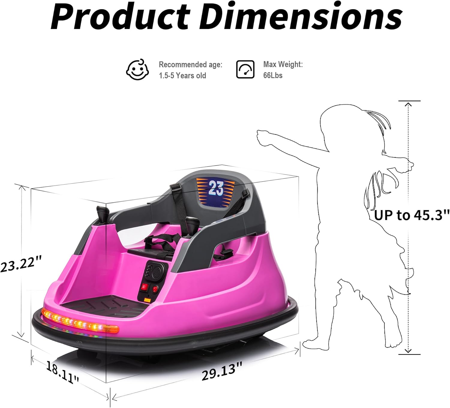 ENHANCED SAFETY PROTECTION: Hikiddo bumper cars for toddlers featuring an advanced five-point harness and 9.7-inch heightened seat back, provides unmatched protection for infants and children.