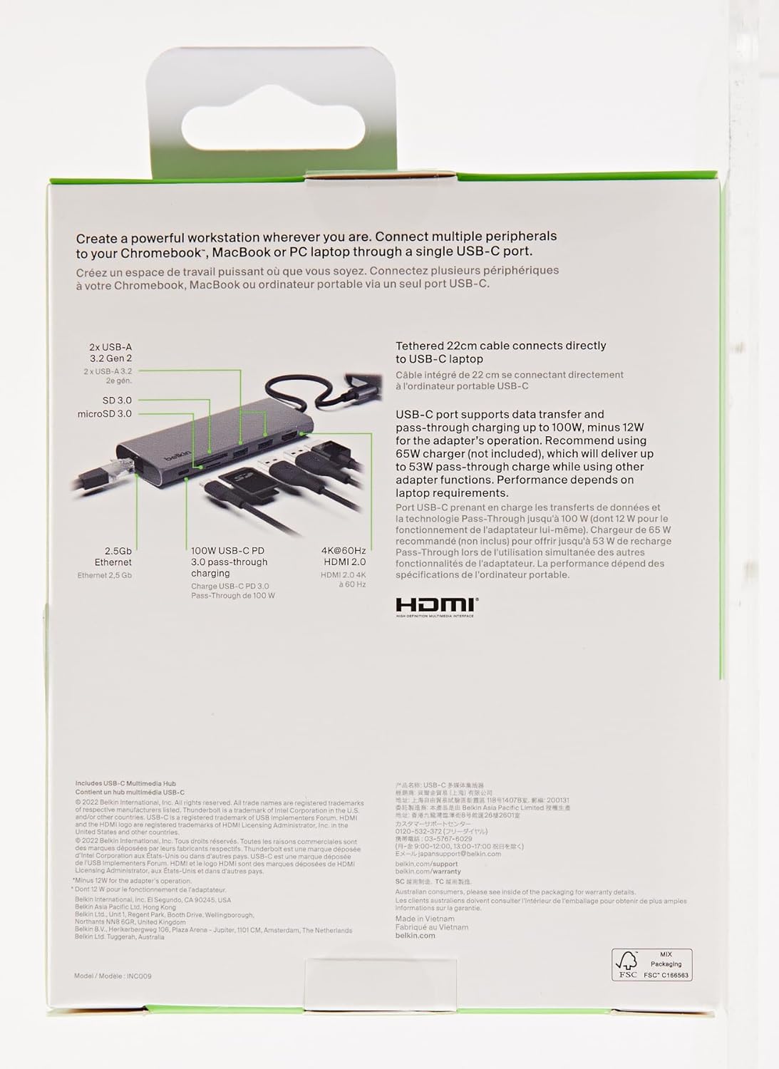 2-YEAR WARRANTY: This Belkin USB-C hub comes with a 2-year limited warranty and a Connected Equipment Warranty (CEW) of up to $2,500, so you can rest assured that your adapter and other devices are safe and protected