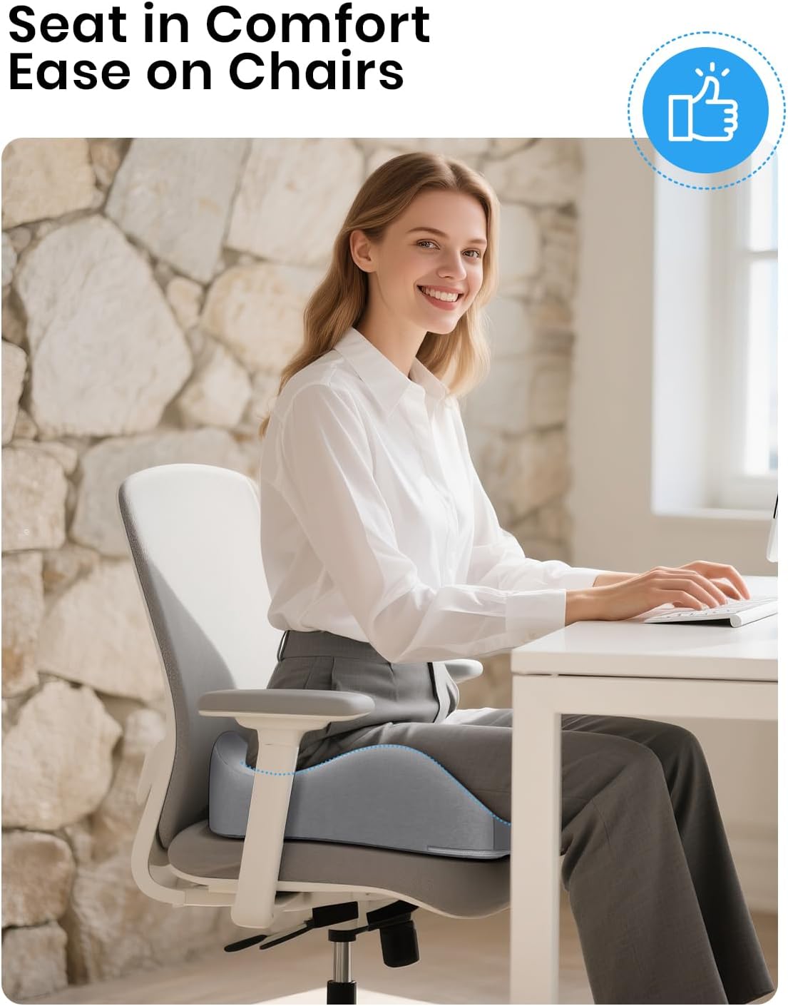 I ended up returning this 1 day after receiving it, and I thought I'd write a review to let others know why. The quality of this pad is high, so it's not that. The size is great too, as well as the comfort level of the softness of the cushion for your sitting bones. My butt hurt less as I tried it for 8 hours straight. Except my tailbone…