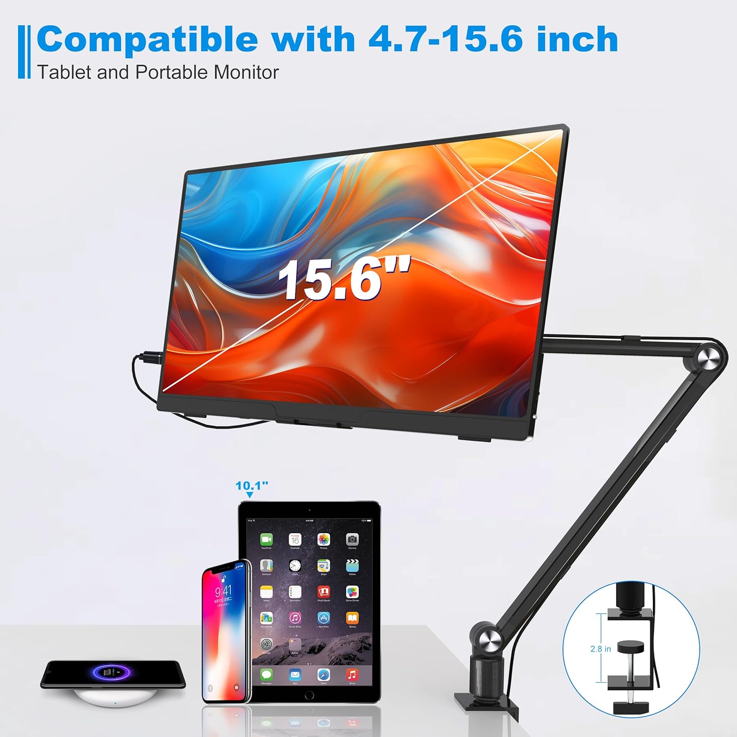 [Wide Compatibility] – Our portable monitor desk mount is compatible with 4-12.9 inch devices, Such as iPads,tablets,kindle,portable screen