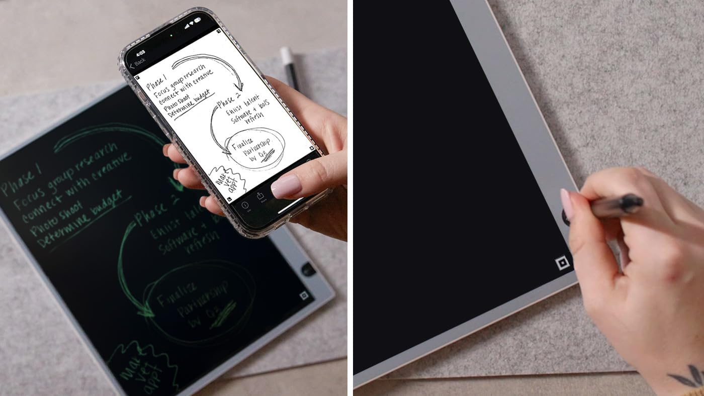 Scan and save notes with your smartphone, then tap the stylus on the eraser spot to clear the board for a fresh start.