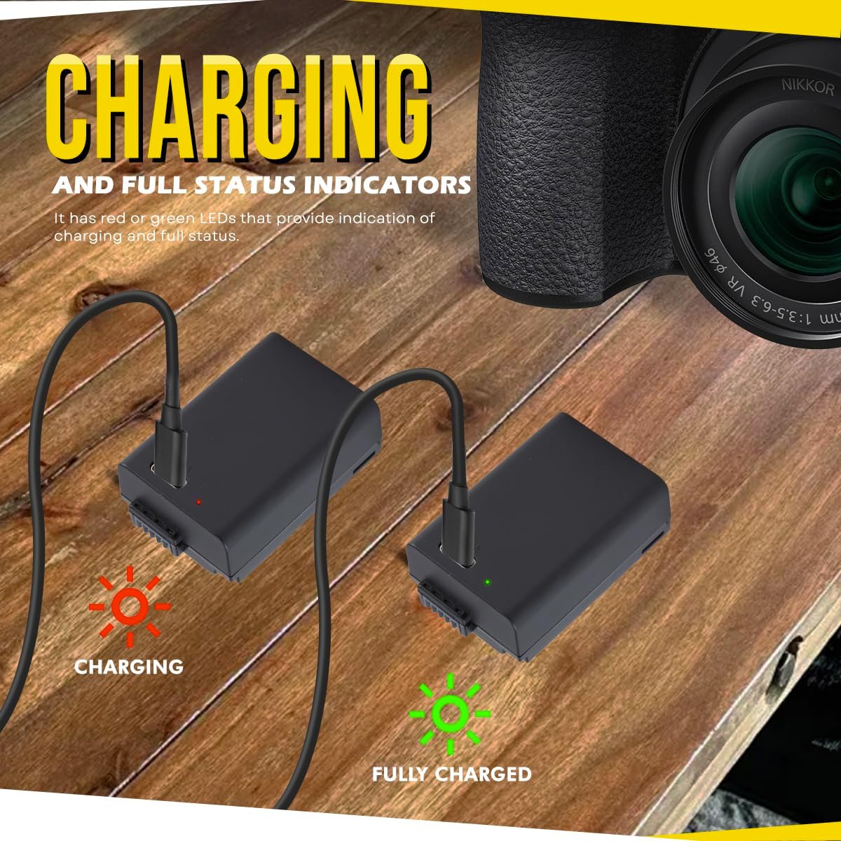 USB Charging Convenience – This EN-EL25 battery Nikon model comes equipped with a built-in USB charging capability. The purchase includes a USB-C charging cable, offering you a versatile charging solution for your photography tasks