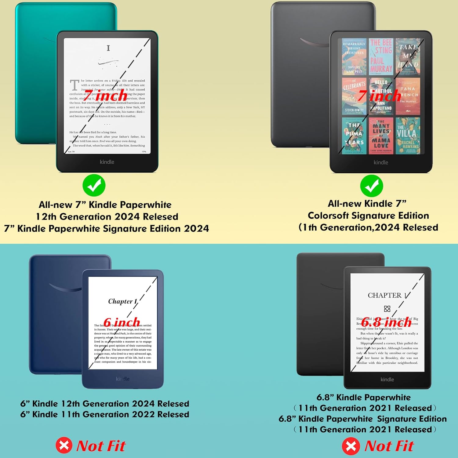 1. Designed exclusively for Amazon All-new 7″ Kindle Paperwhite 12th Generation 2024/7″ Paperwhite Signature Edition 2024 & 7″ Kindle Colorsoft Signature Edition 2024 eReader (Model.SA568B/SA569P).
