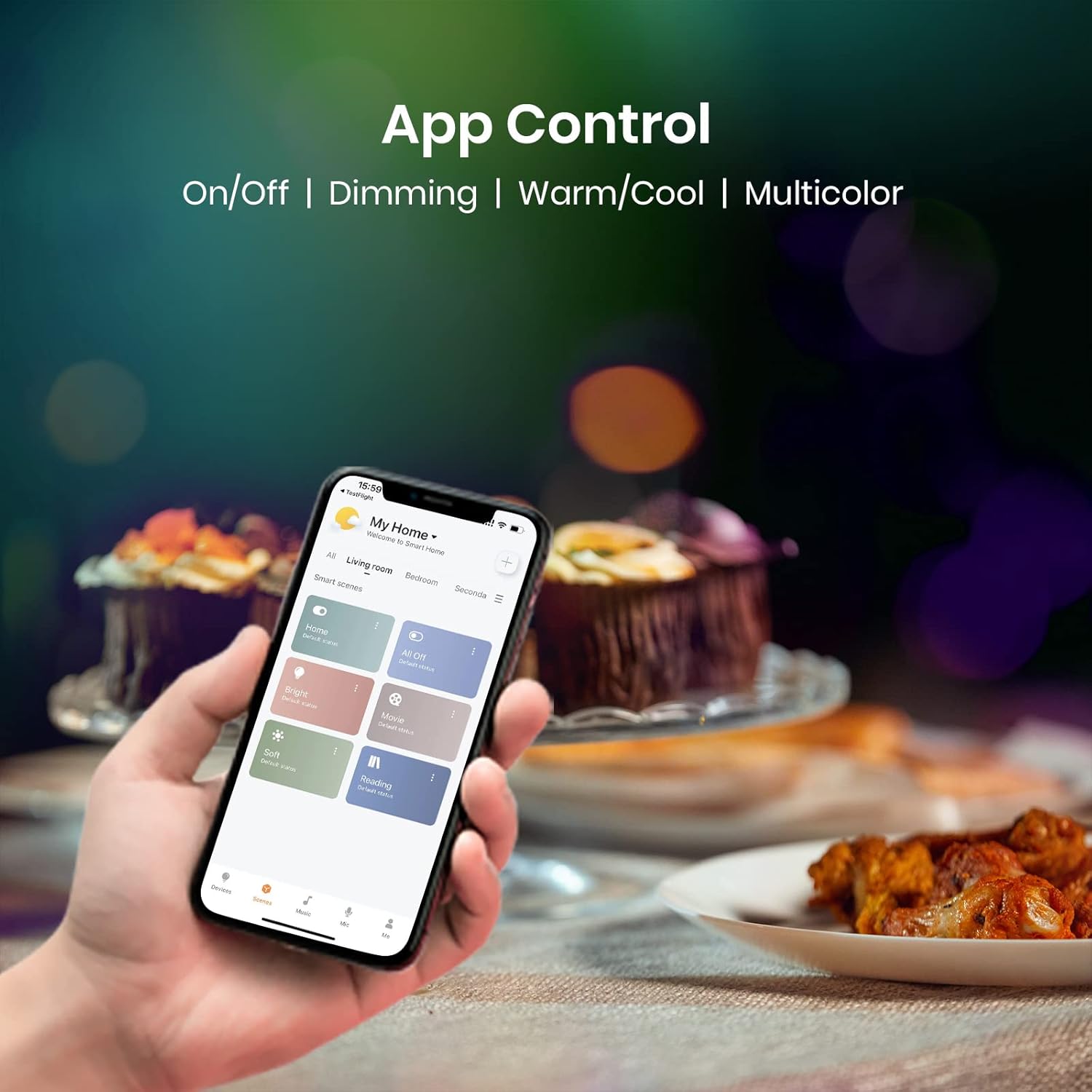 Quick batch setup and control through the app Voice Control Remote Control Timer Music Sync Dimming, warm/cool, RGB color