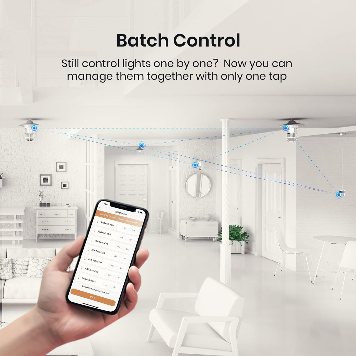 Bothered by complex setups and long pairing time? Now with 1 simple step, you can add up to 90 lights in 1 second!