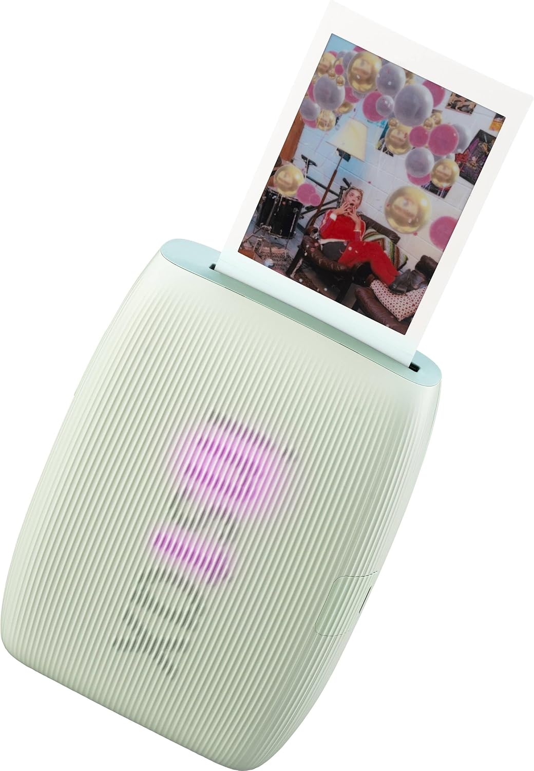 Print directly from your smartphone or tablet using its Bluetooth connectivity. Add some excitement by selecting from a variety of frames and filters for more printing fun. Print a QR code to your image with this Mini Link 3 Sage Green and for those seeking a photo booth experience, the Click to Collage app takes a series of six images in three-second intervals and lets you select which ones to print as a collage.