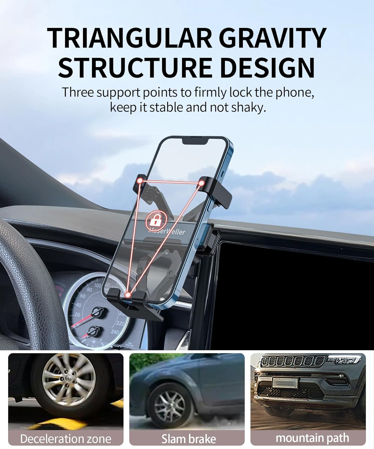 High quality materials: The phone holder is made of high-end ABS material, which not only does not deform after long-term use, but also has a smooth and flat appearance that fits the screen and conforms to the original car style