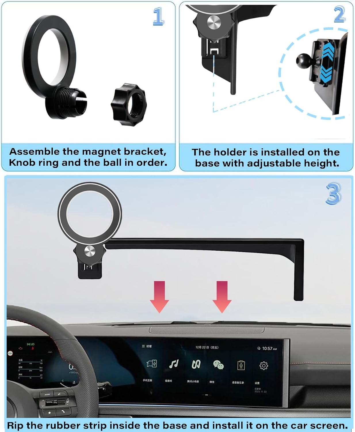 Package includes the mount and two metal rings for universal compatibility. This thoughtful solution keeps your phone within reach while maintaining focus on the road.
