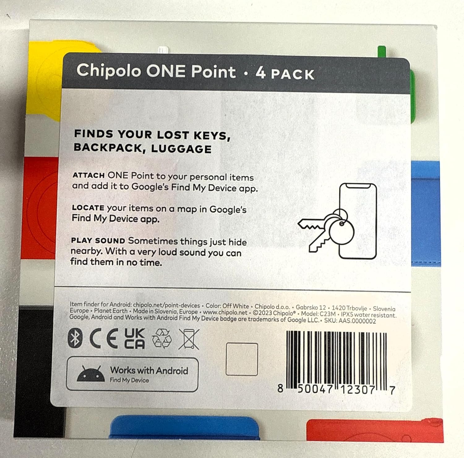 FIND YOUR MISSING ITEMS WITH GOOGLE’S FIND MY DEVICE APP – Play a sound in Google’s Find My Device app and make the Chipolo Point ring with a loud melody. Locate your missing keys, backpack, luggage, or child’s toy with Google’s Find My Device network, made up of hundreds of millions of Android devices around the world. Mark your missing item as lost in the app and display a message or your contact information for the Android user that finds it.