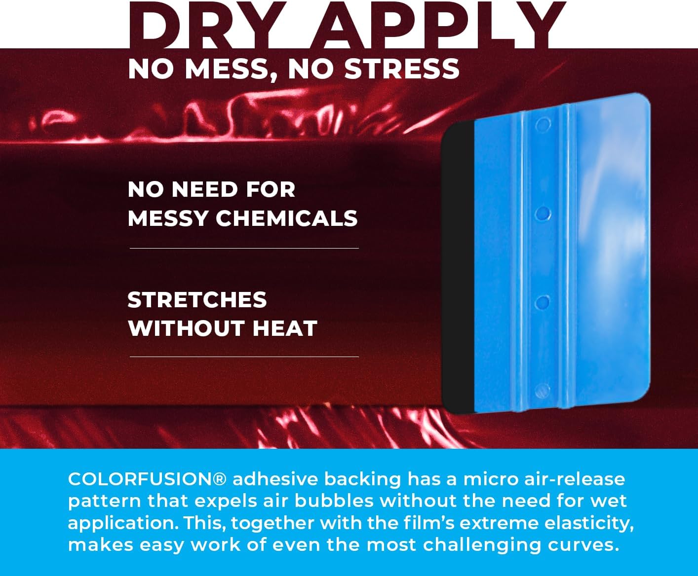 Exceptional Self-Healing: ColorFusion has self-healing abilities far in advance of any car wrap vinyl, ensuring your finish looks magnificent 2 x longer than other wraps, and preventing damage to the paint-work underneath. Gently apply heat with a heat gun, and watch your ColorFusion wrap heal from scratches that would spell the end for any other film.