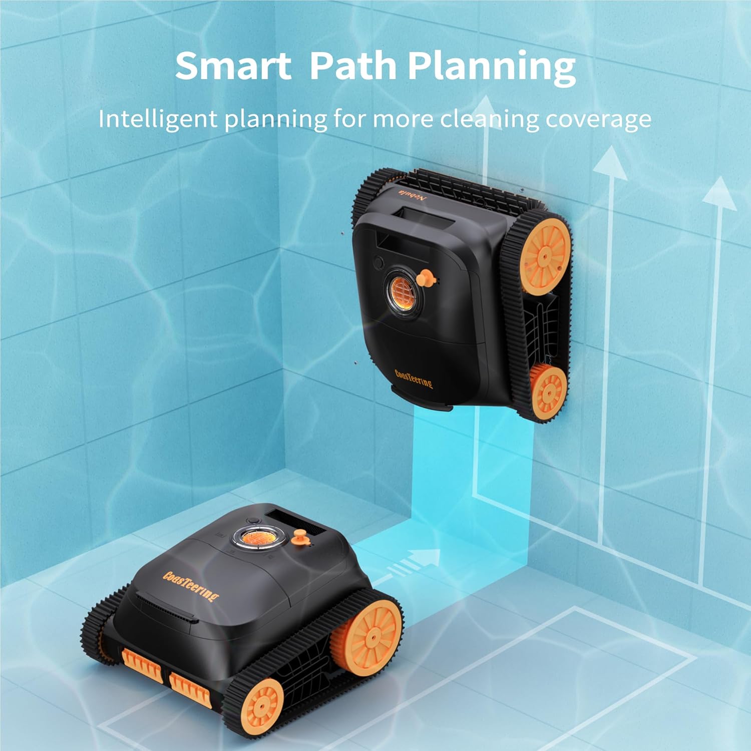 Smart Cleaning: Path Planning technology allows the CoasTeering Nebula pool vacuum robot to follow a fixed pattern instead of a random one. Four cleaning modes allow you to customize the cleaning schedule for more pool coverage with less energy consumption