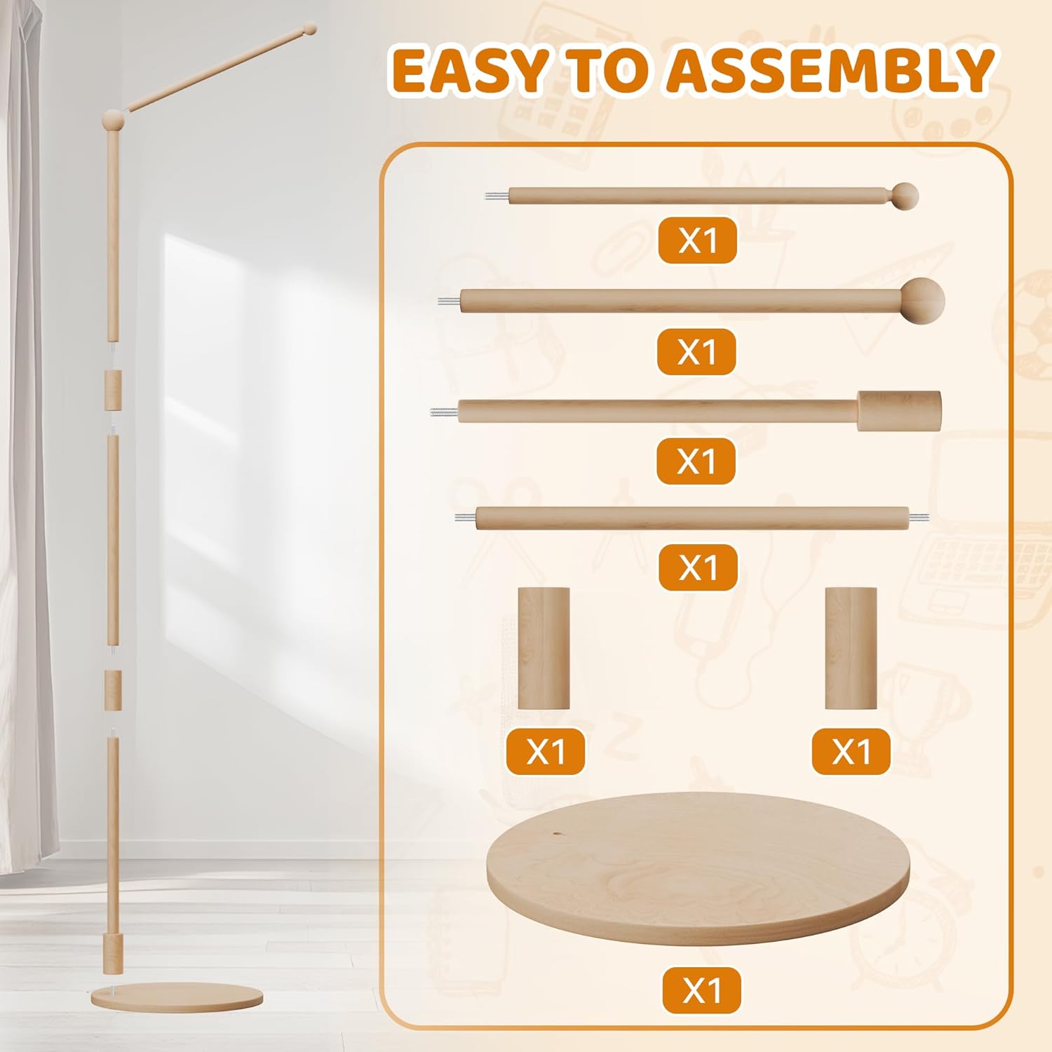 【Cozy Soother & Nursery Decor】Pair this baby mobile arm with a musical mobile: the crib mobile hanger lets you hang swaying, melodic mobiles to calm fussy babies, entertain them during playtime, and lull them into peaceful naps. Its warm natural wood tone also elevates your nursery—this mobile holder for crib doubles as stylish decor, infusing the space with cozy, inviting charm.